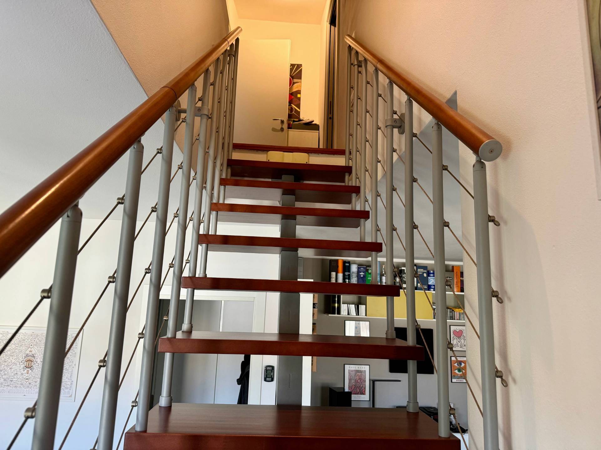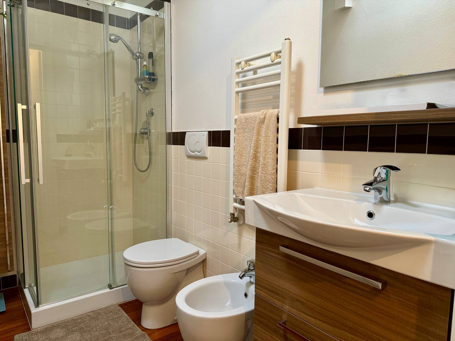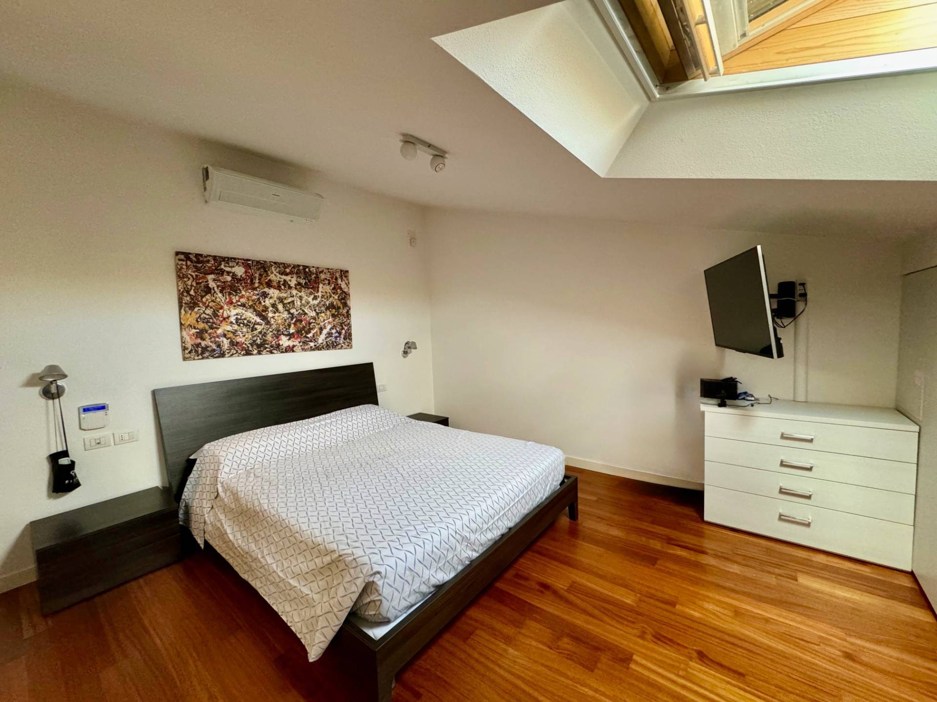 L'immobile sviluppato su due livelli, piano secondo e piano sottotetto, ed composto al primo livello da ampia zona giorno con cucina, terrazza, antibagno/ripostiglio e bagno; al secondo livello troviamo una camera matrimoniale con armadio a muro, seconda stanza ad uso ufficio o camera singola, secondo bagno con finestra di tipo velux.