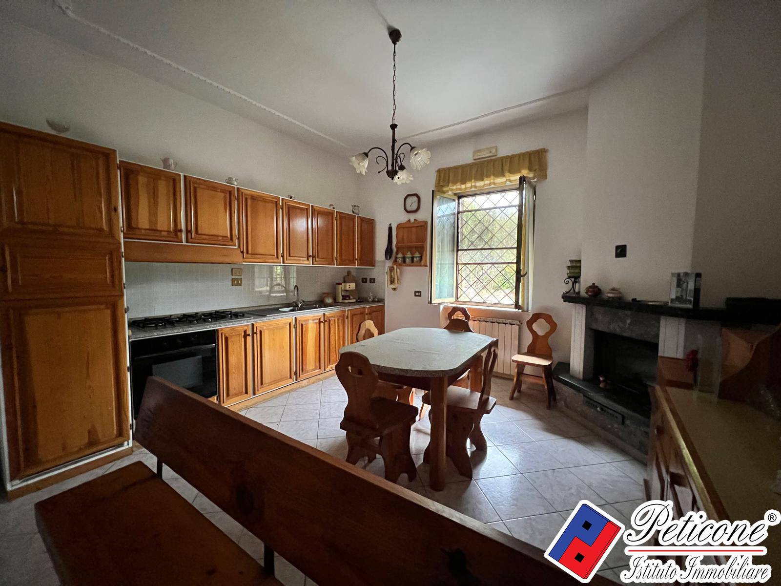SISTEMAZIONE INTERNI Lappartamento composto da: INGRESSO, una AMPIA ZONA GIORNO CON TERMOCAMINO, caratterizzata da CUCINA in muratura a vista e zona pranzo ben organizzata.