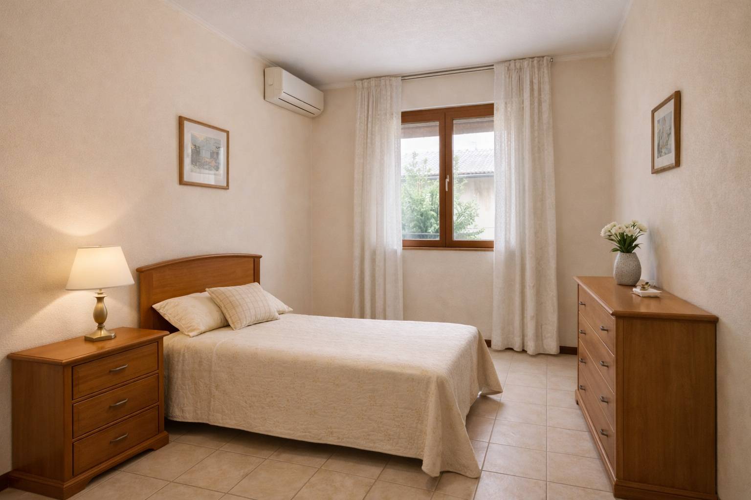 La zona notte si compone di due camere da letto ben proporzionate, adatte sia a una famiglia sia a chi desidera uno studio o una stanza per gli ospiti.