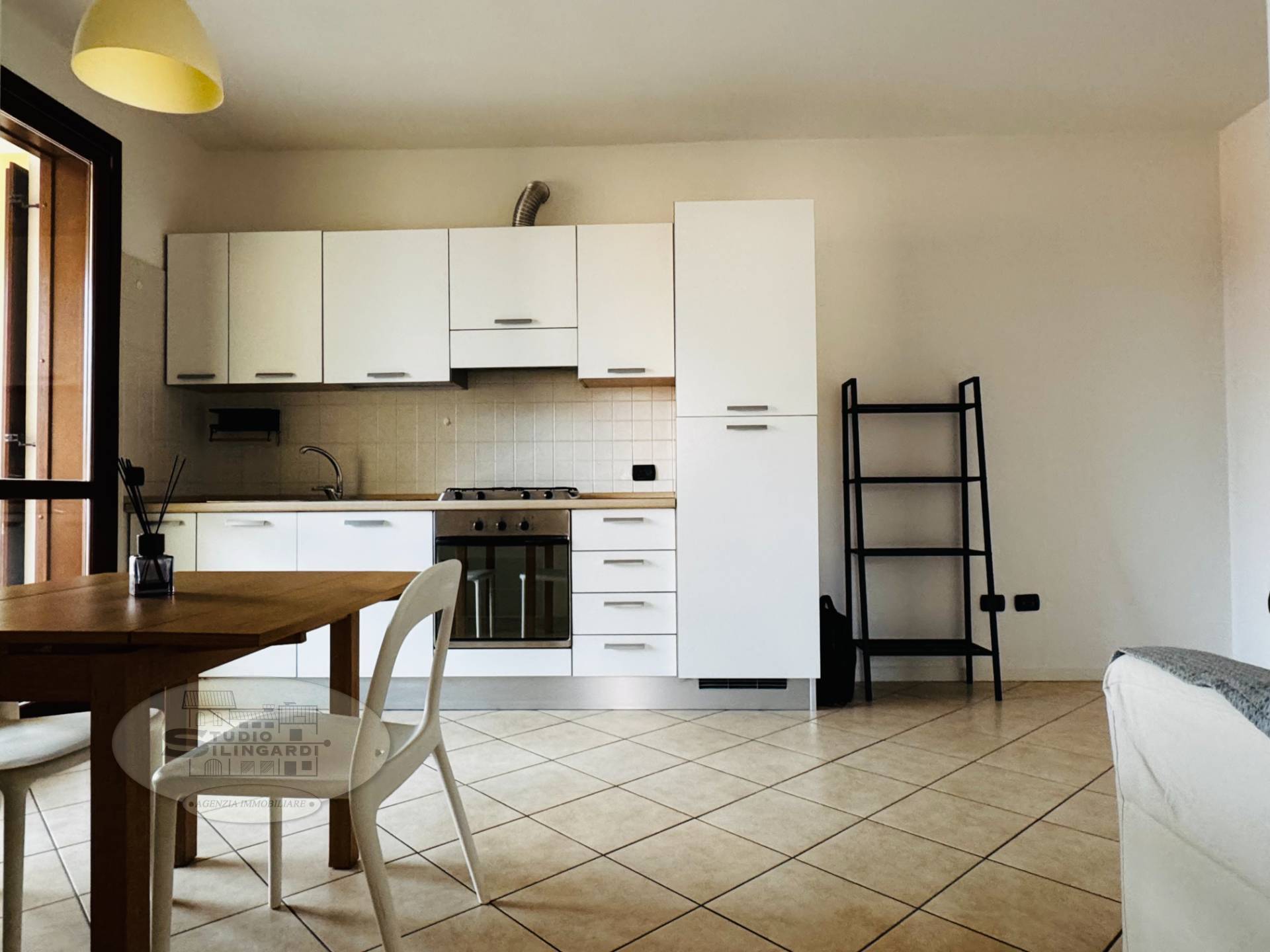 Al piano secondo con ascensore , composto da: ingresso in pranzo soggiorno con angolo cottura , disimpegno notte , camera matrimoniale , bagno e loggia coperta; garage al piano interrato.