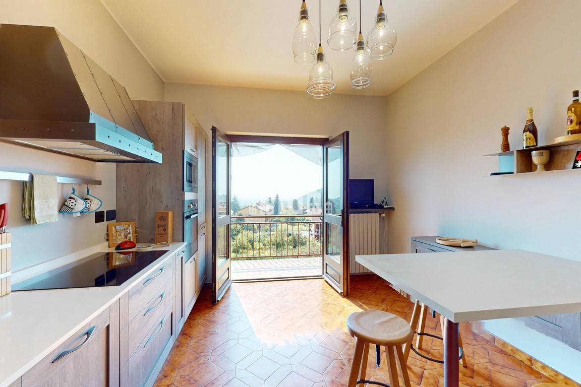 La zona giorno accogliente e ben distribuita, con un ampio soggiorno che si apre su un grazioso terrazzino, ideale per gustare un caff allaperto, e una cucina abitabile con accesso a un balcone con vista aperta sul paese.
