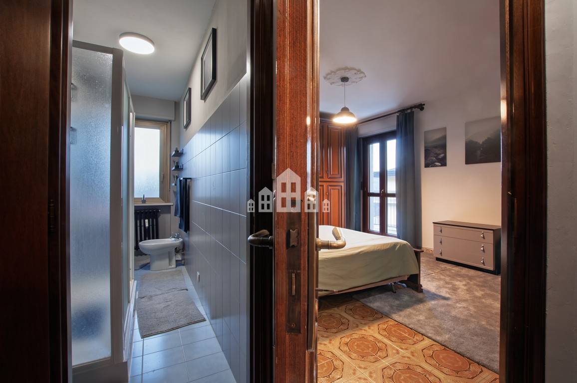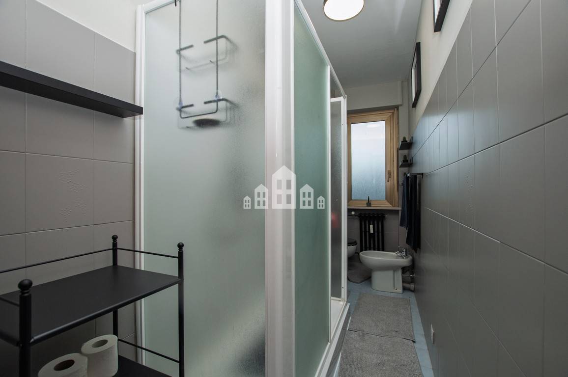 Un disimpegno separa la zona giorno dalla camera da letto matrimoniale e dal bagno, dotato di una comoda doccia.