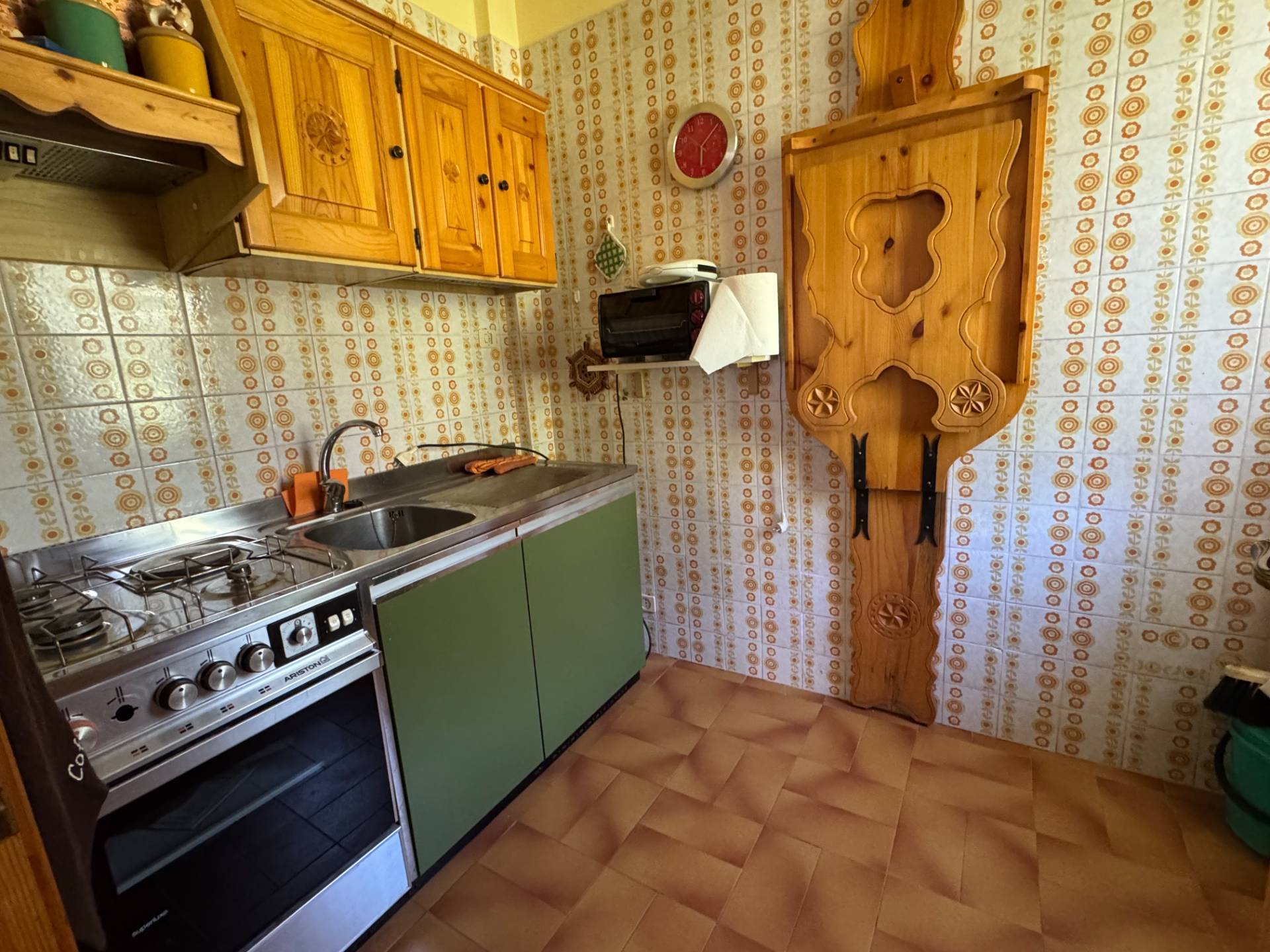Composto da: Corridoio Ingresso su soggiorno luminoso con zona pranzo e relax Cucinino separato, pratico e ben organizzato Due camere da letto, ideali per ospitare famiglie o gruppi di amici Bagno completo Due balconi con vista sulle montagne Arredato e abitabile da subito Riscaldamento centralizzato con termovalvole per una gestione ottimale dei consumi Posto auto esterno di propriet, comodo e sempre disponibile Un appartamento pronto per essere vissuto, con spazi funzionali che garantiscono comfort e praticit, adatto a chi cerca una soluzione senza pensieri.