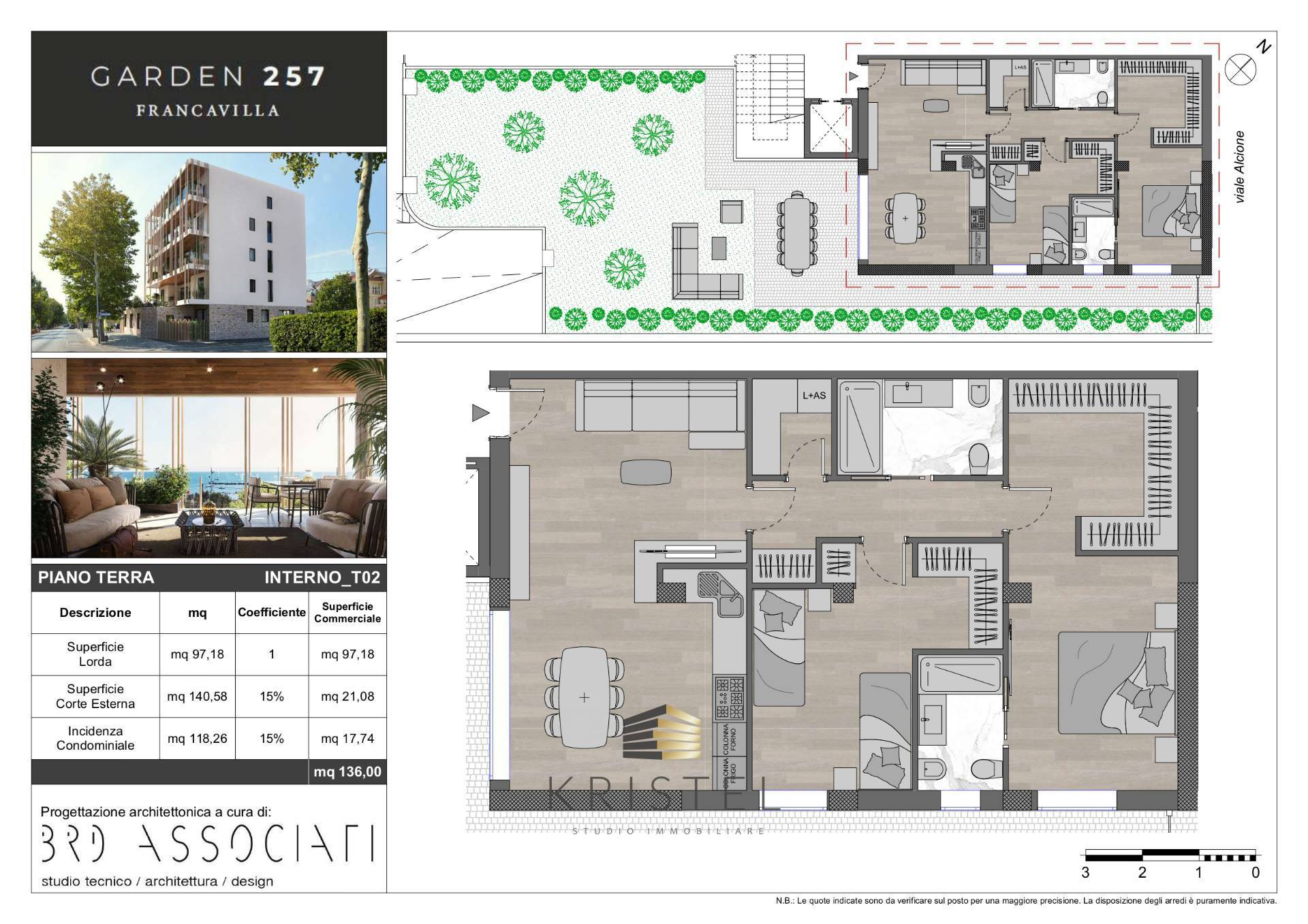 L'appartamento viene completato da un ampio ed accogliente giardino di circa 140 mq dove collocare un arredo con zona pranzo / salotto per trascorrere momenti in allegria e serenit con amici e familiari e godere della brezza marina.