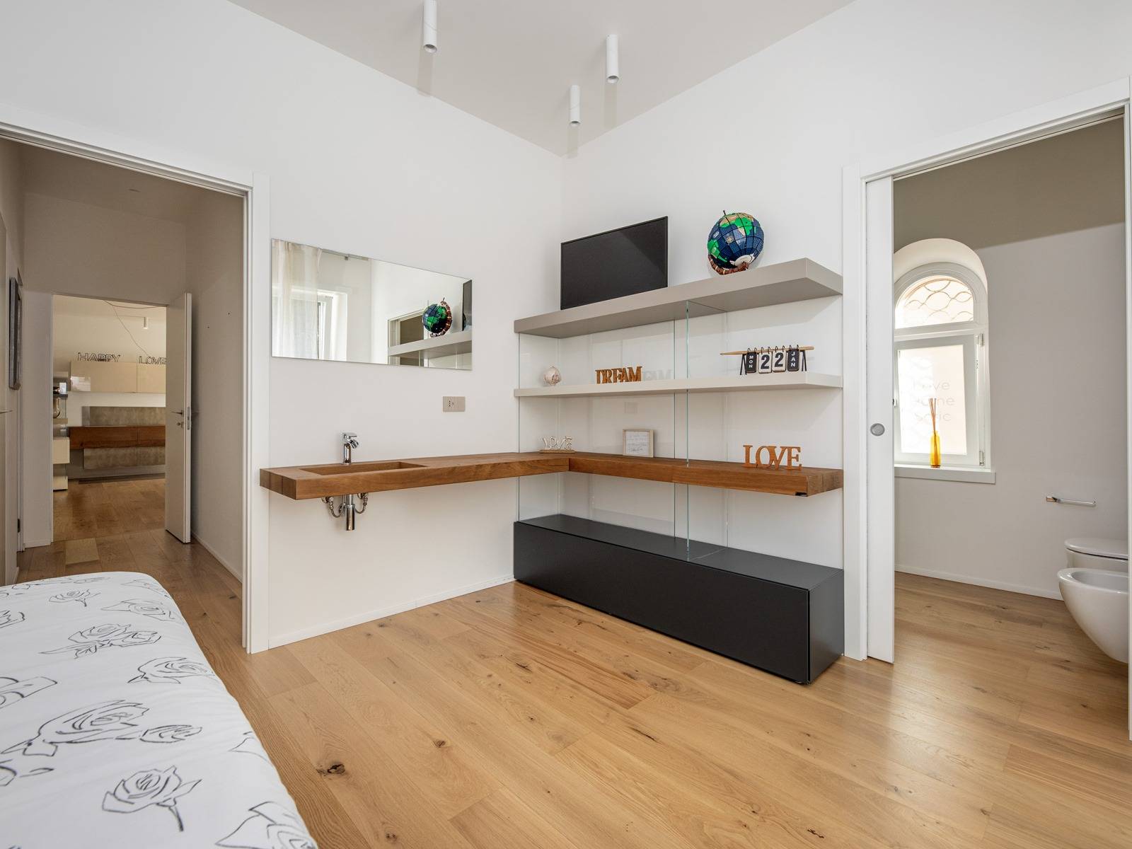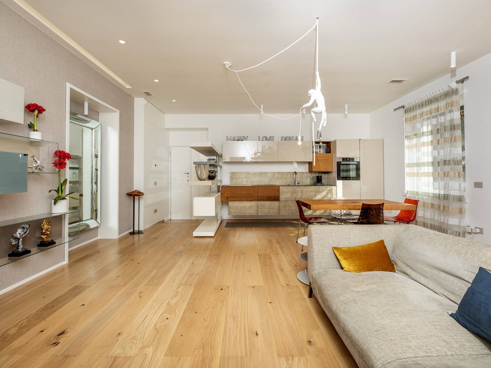 L'appartamento molto luminoso ad ogni ora del giorno grazie alla sua posizione privilegiata e alla sua esposizione sud-est, ed composto da un ampio ed elegante salone doppio completo di cucina a vista, due camere da letto, doppi servizi e ripostiglio, oltre a comodi disimpegni, il tutto completamente e totalmente ristrutturato con accurata e qualitativa attenzione ai dettagli, primo fra tutti la presenza dell'impianto di riscaldamento e raffreddamento a pavimento, oltre a molte altre particolarit che rendono l'immobile unico nel suo genere.