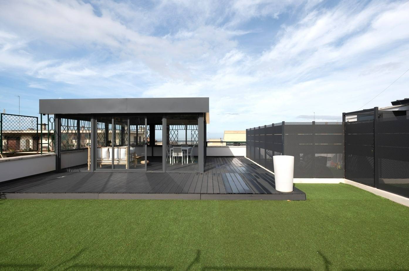 Completano la propriet un terrazzo di propriet esclusiva di 150 mq con stupenda vista panoramica su Roma, munito di splendido e comodo ambiente vetrato e comodo locale tecnico.