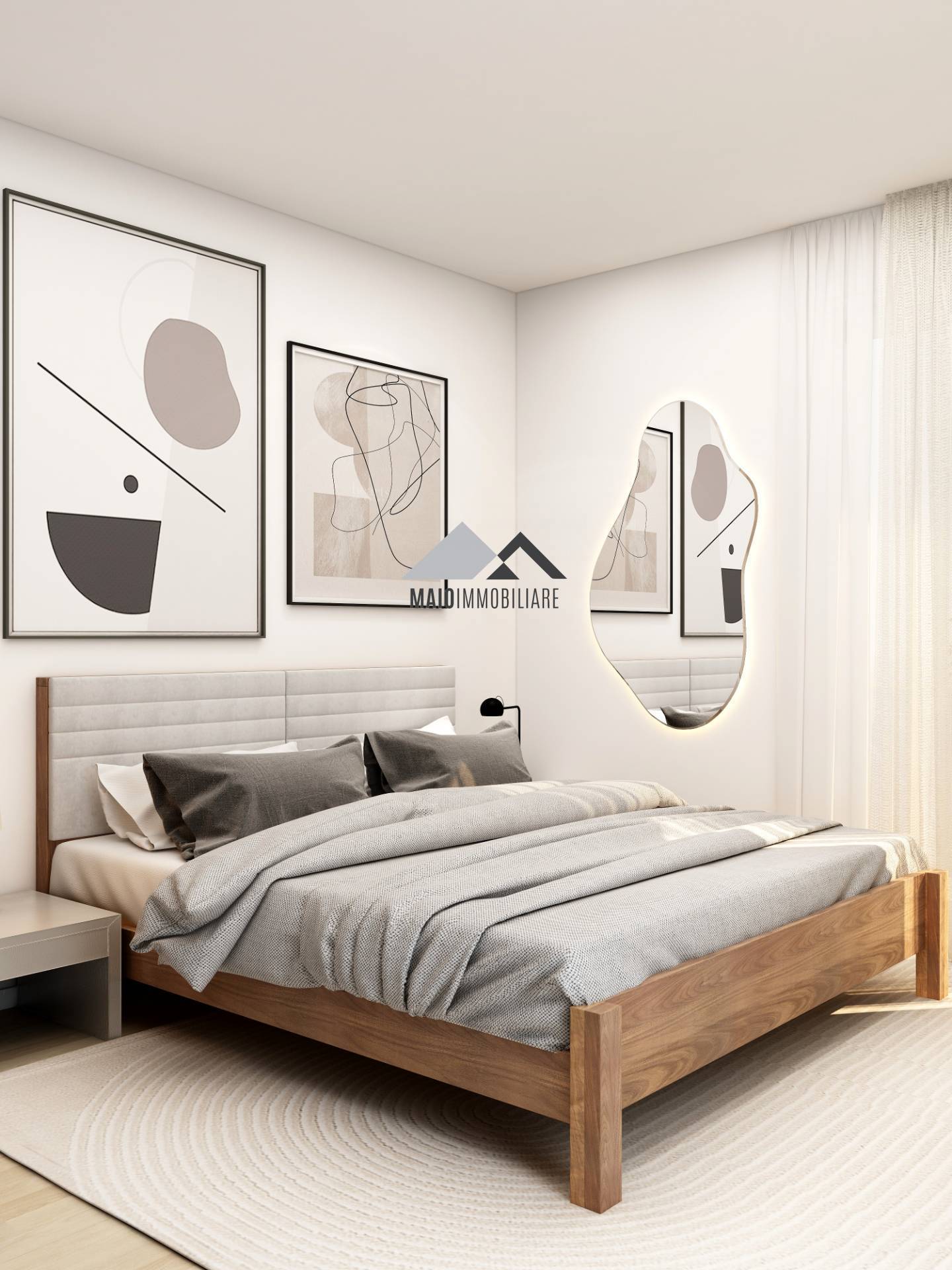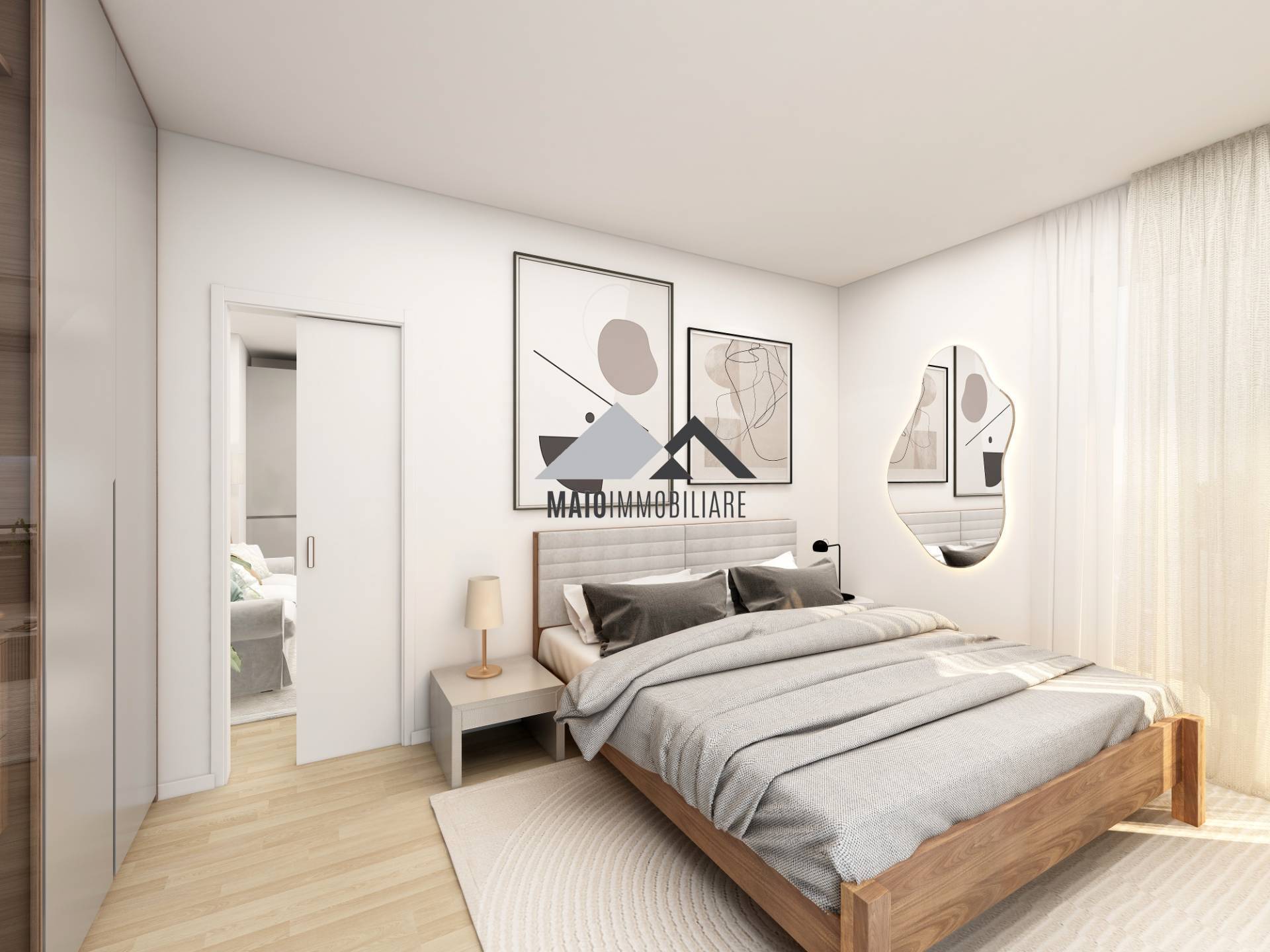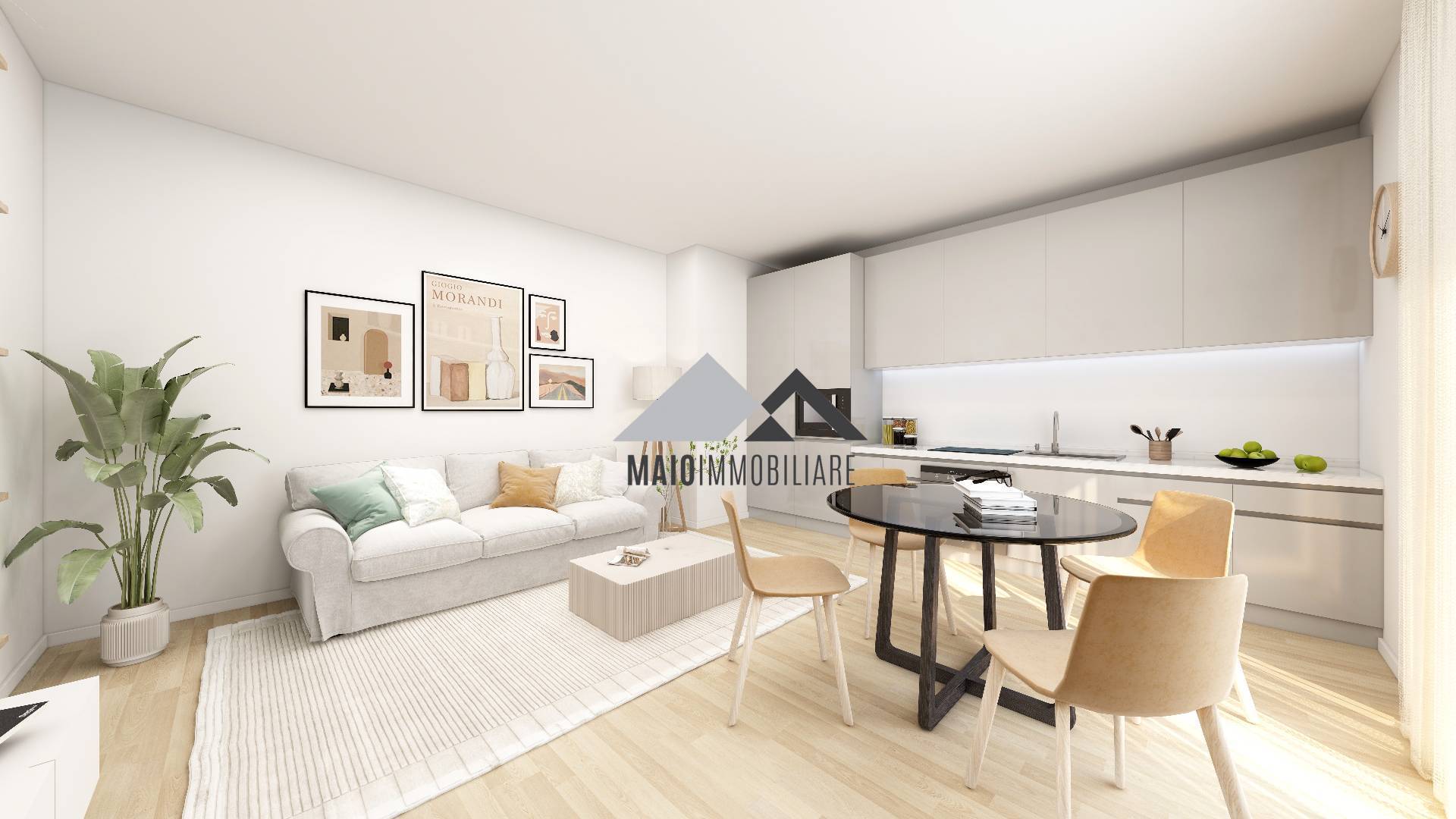 Il progetto prevede l'ingresso che si apre su un luminoso soggiorno-pranzo dotato di un pratico angolo cottura, una camera da letto spaziosa e accogliente, un bagno completo di tutti i servizi.
