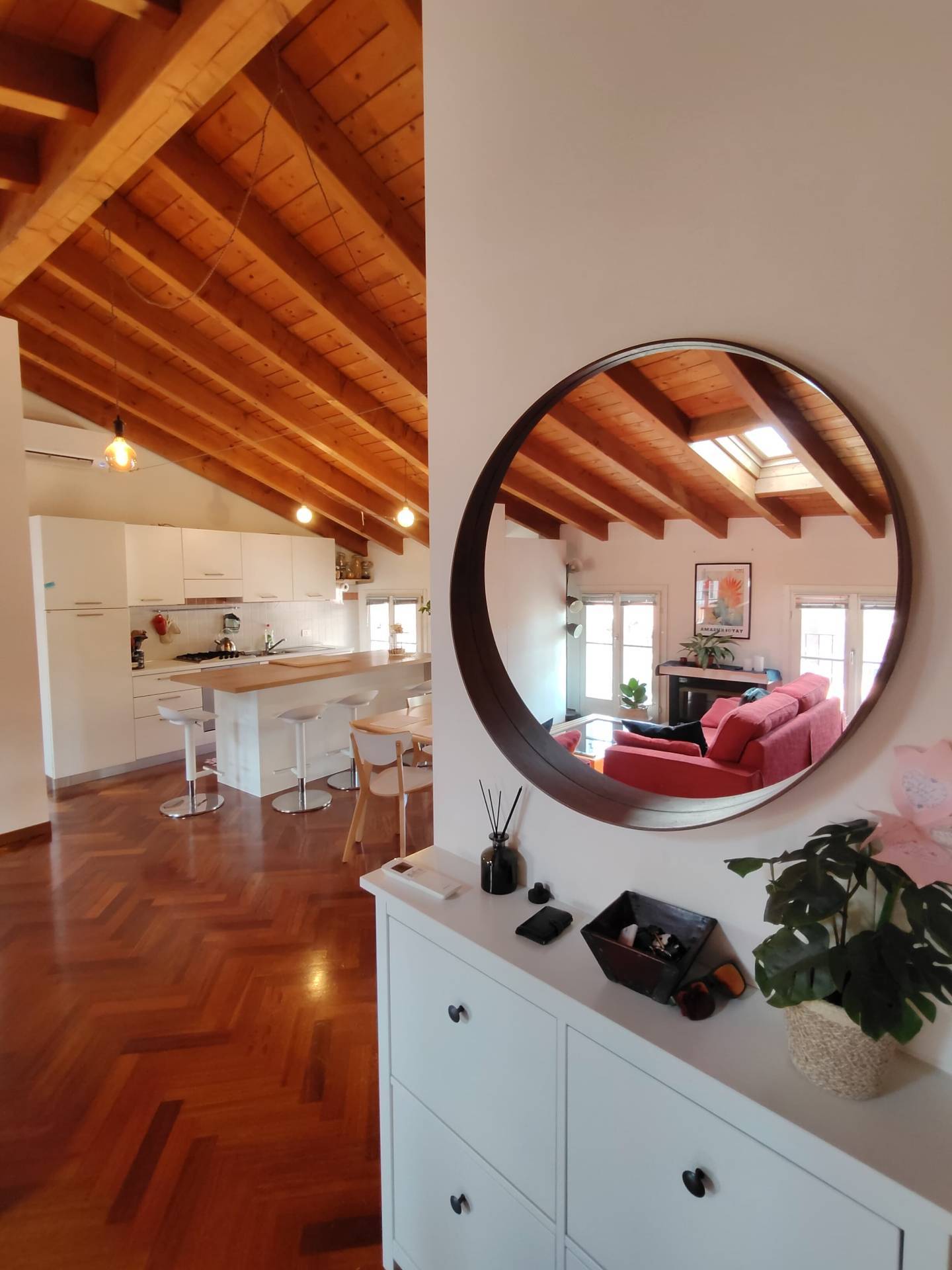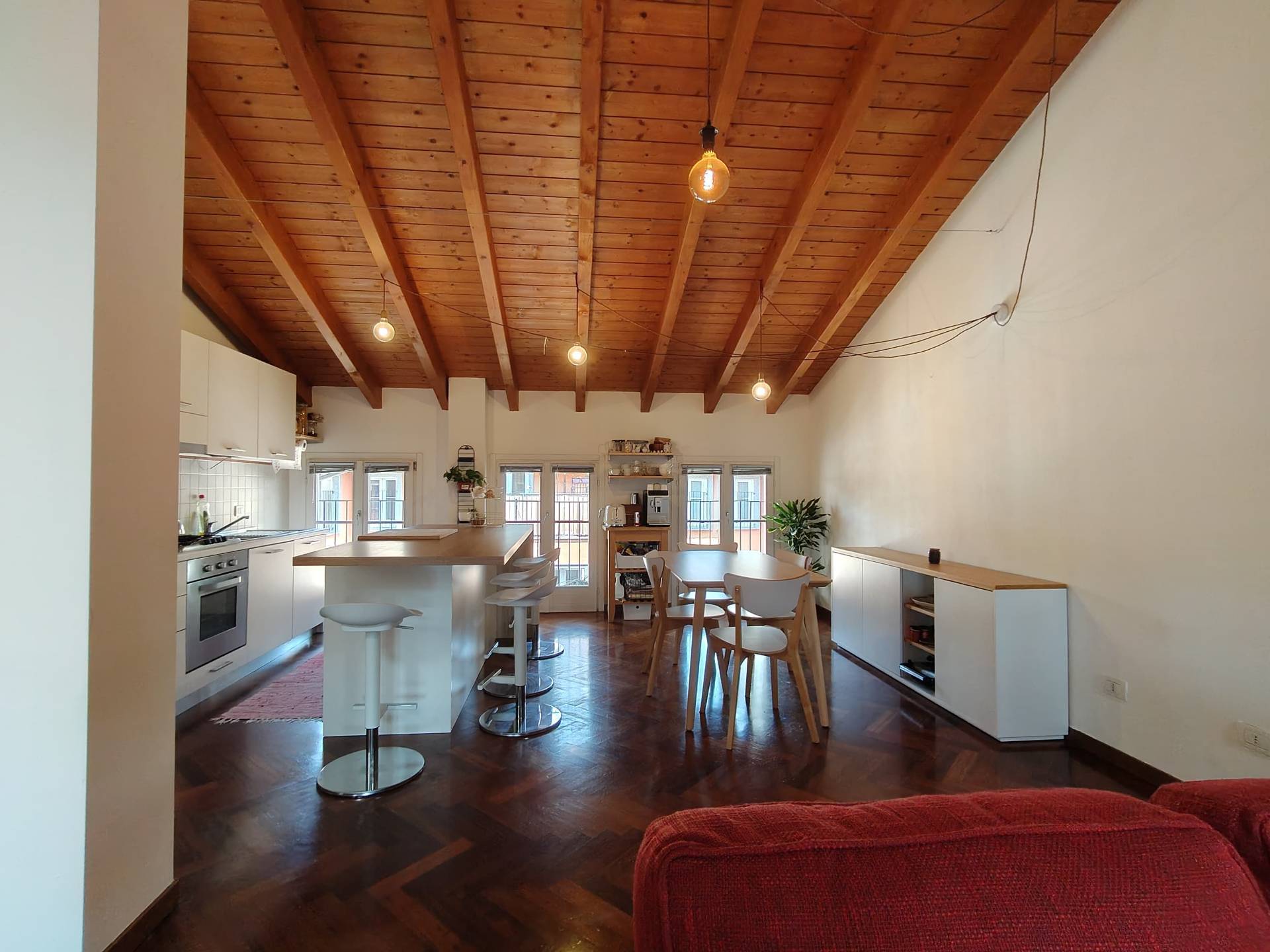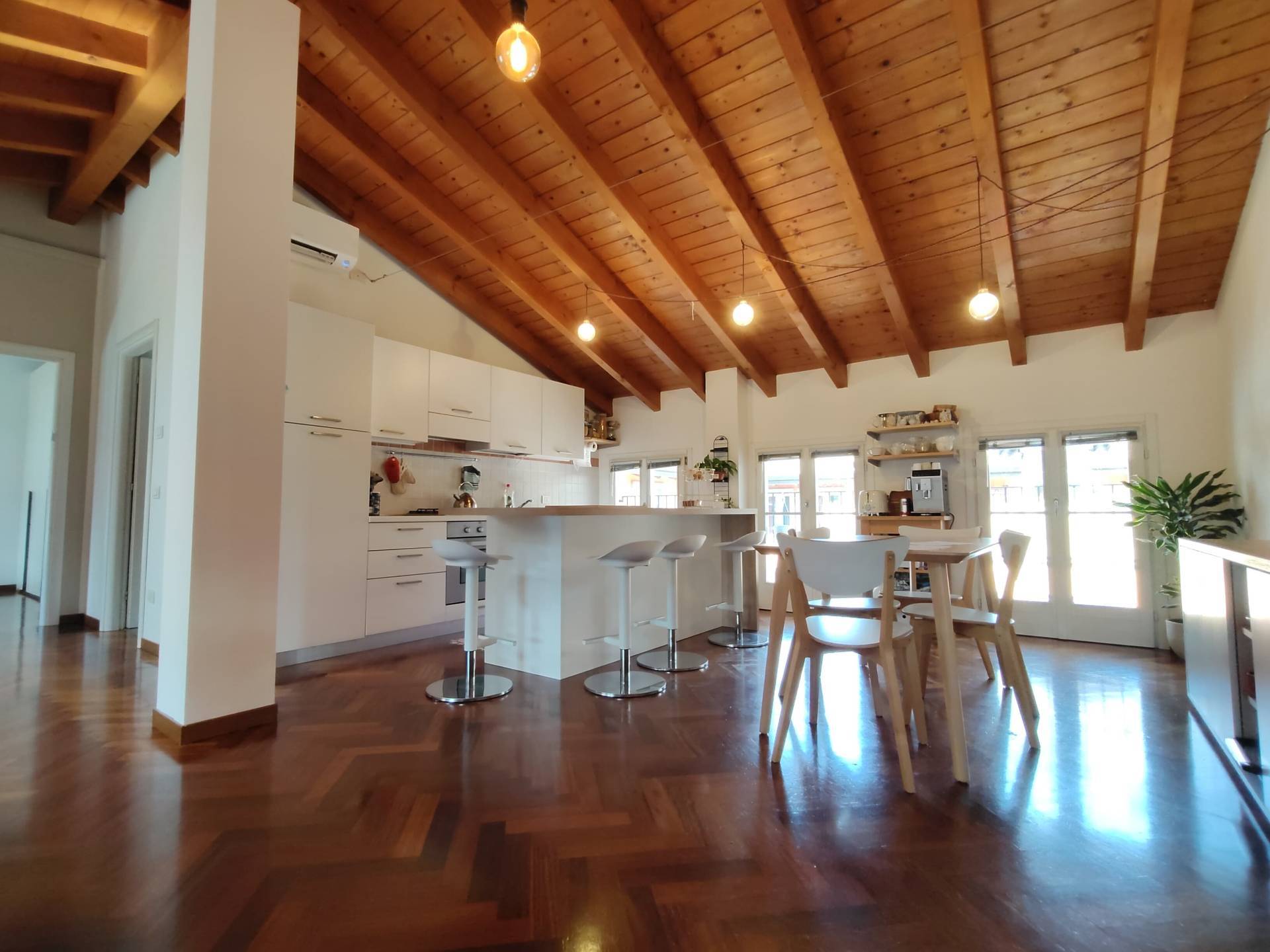 All'interno del complesso "Le Corti del Centro", completamente ricostruito nel 2006, proponiamo al 4° piano con ascensore, luminoso APPARTAMENTO di circa 118 mq MANSARDATO con travi a vista e tutto parquet ad eccezione dei bagni.