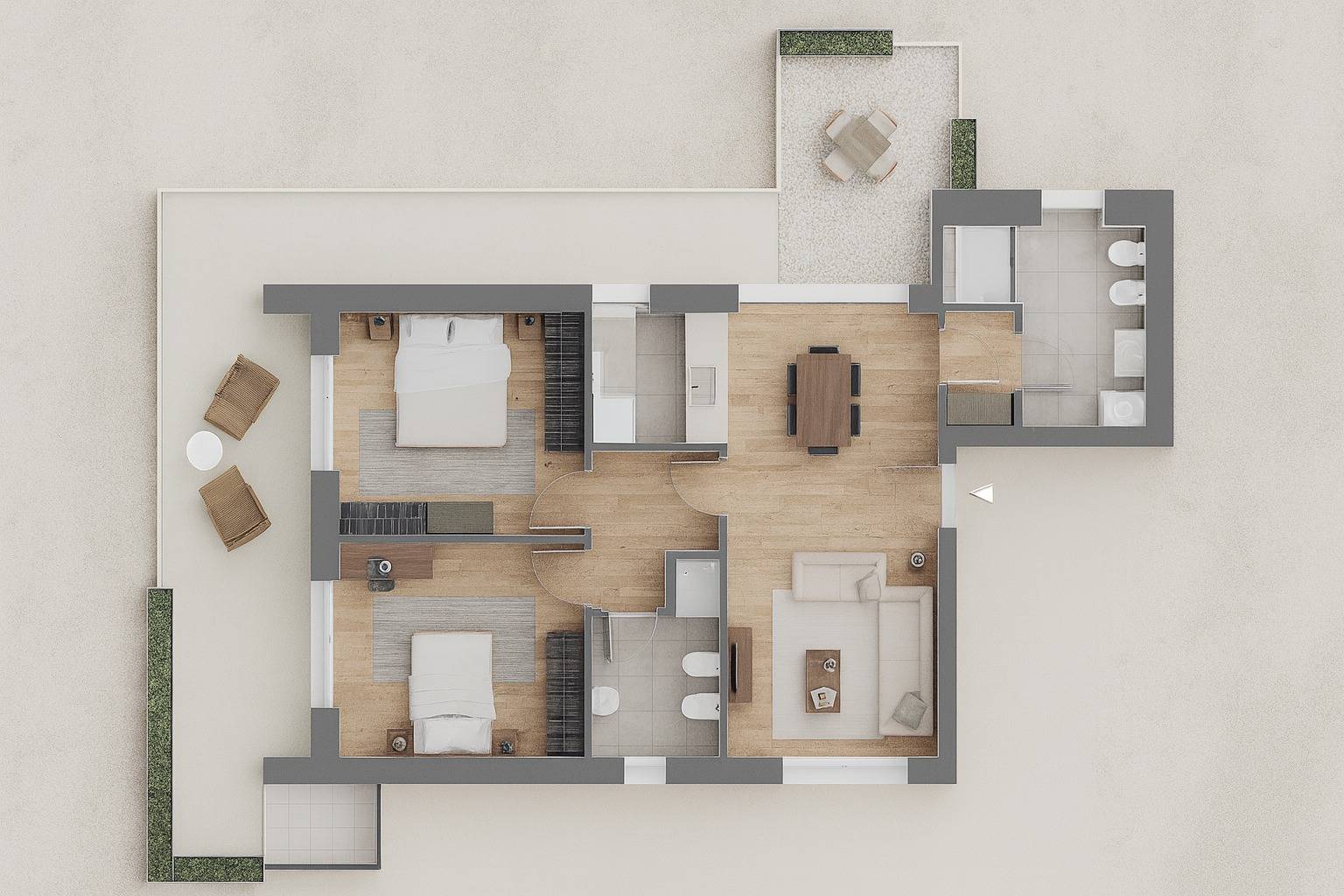 Nuova residenza moderna a Gallarate Via San Rocco Comfort, design e tecnologia in una posizione strategica Appartamento trilocale composto da: soggiorno, cucina, due bagni, due camere e ampio terrazzo.