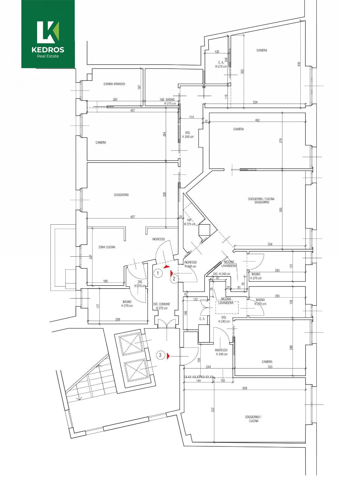 Possibili soluzioni abitative: Divisione in due unit: un ampio quadrilocale e un trilocale.