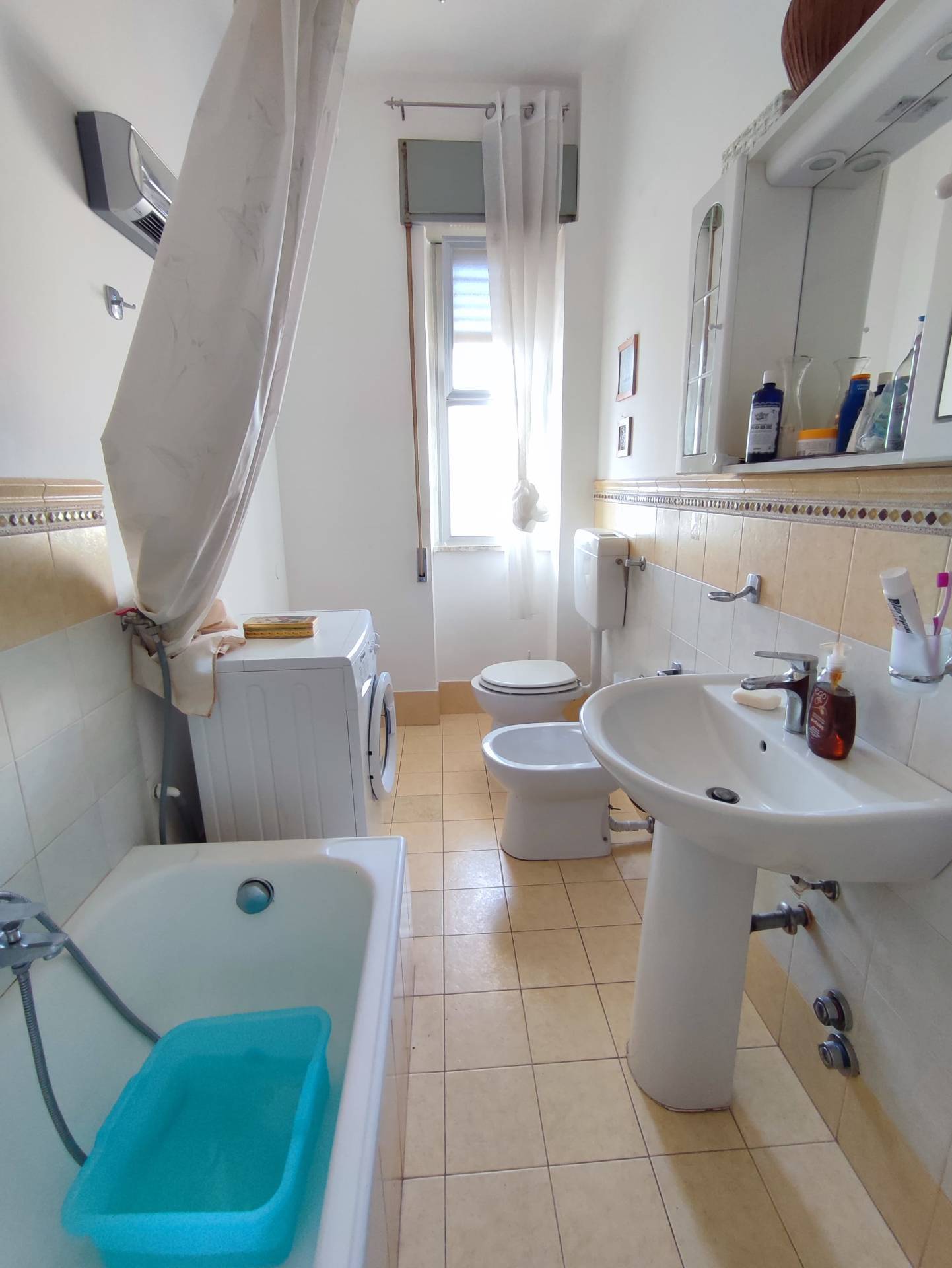 L'appartamento, che gode di luce e aria da ogni lato ed impreziosito dalla veduta sul mare di Gallipoli, dispone di aria condizionata in ogni ambiente, doppi infissi in alluminio, impianto elettrico in buone condizioni.