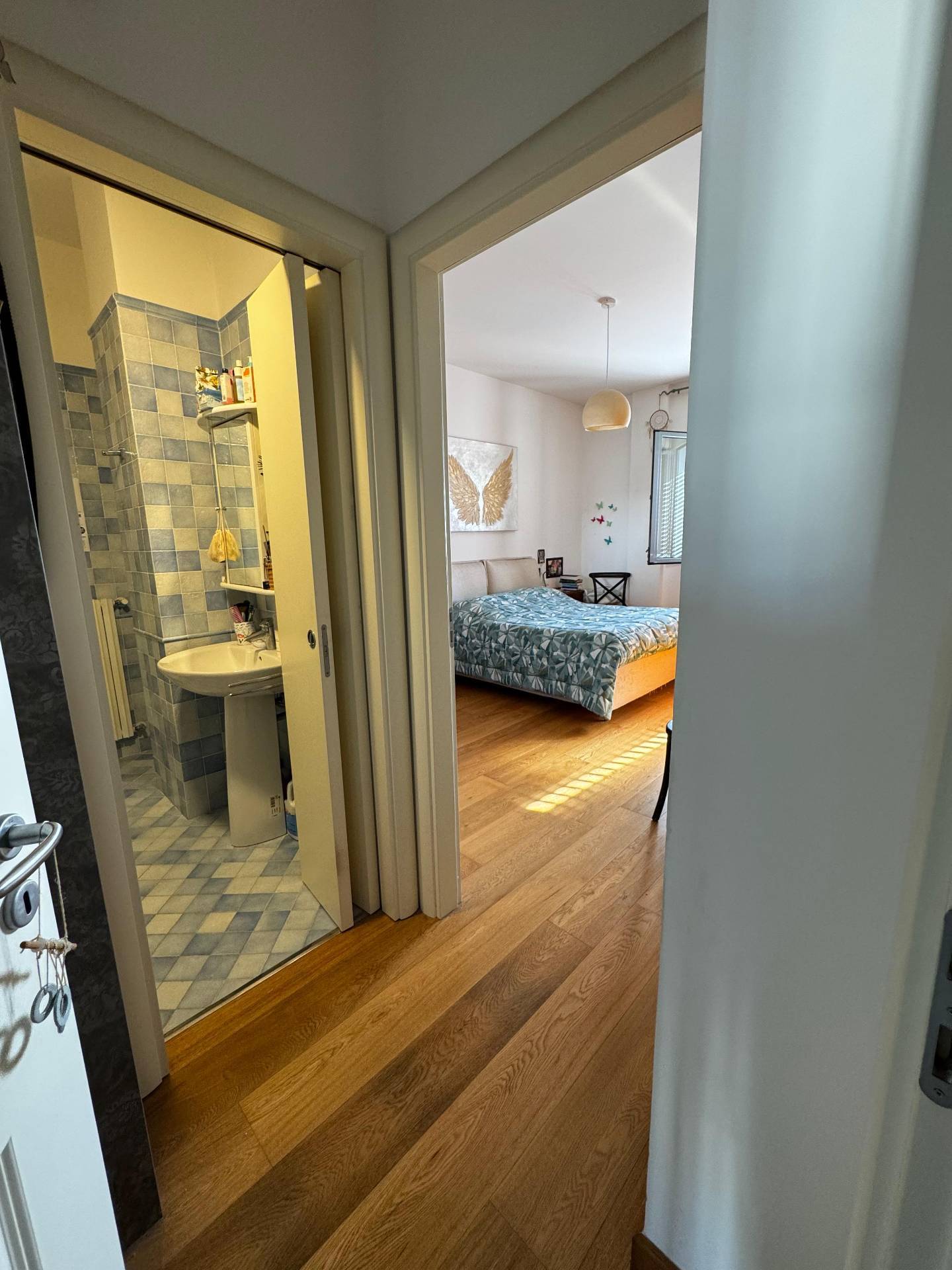 L'immobile situato al terzo piano della scala A, cos composto: ingresso disimpegnato, ampio soggiorno con balcone, cucina in angolo cottura con sfogo in ampio balcone, anti bagno e bagno finestrato, un disimpegno poi, ci conduce alla zona notte dove troviamo un'ampia camera da letto con accesso in balcone ed un secondo bagno.