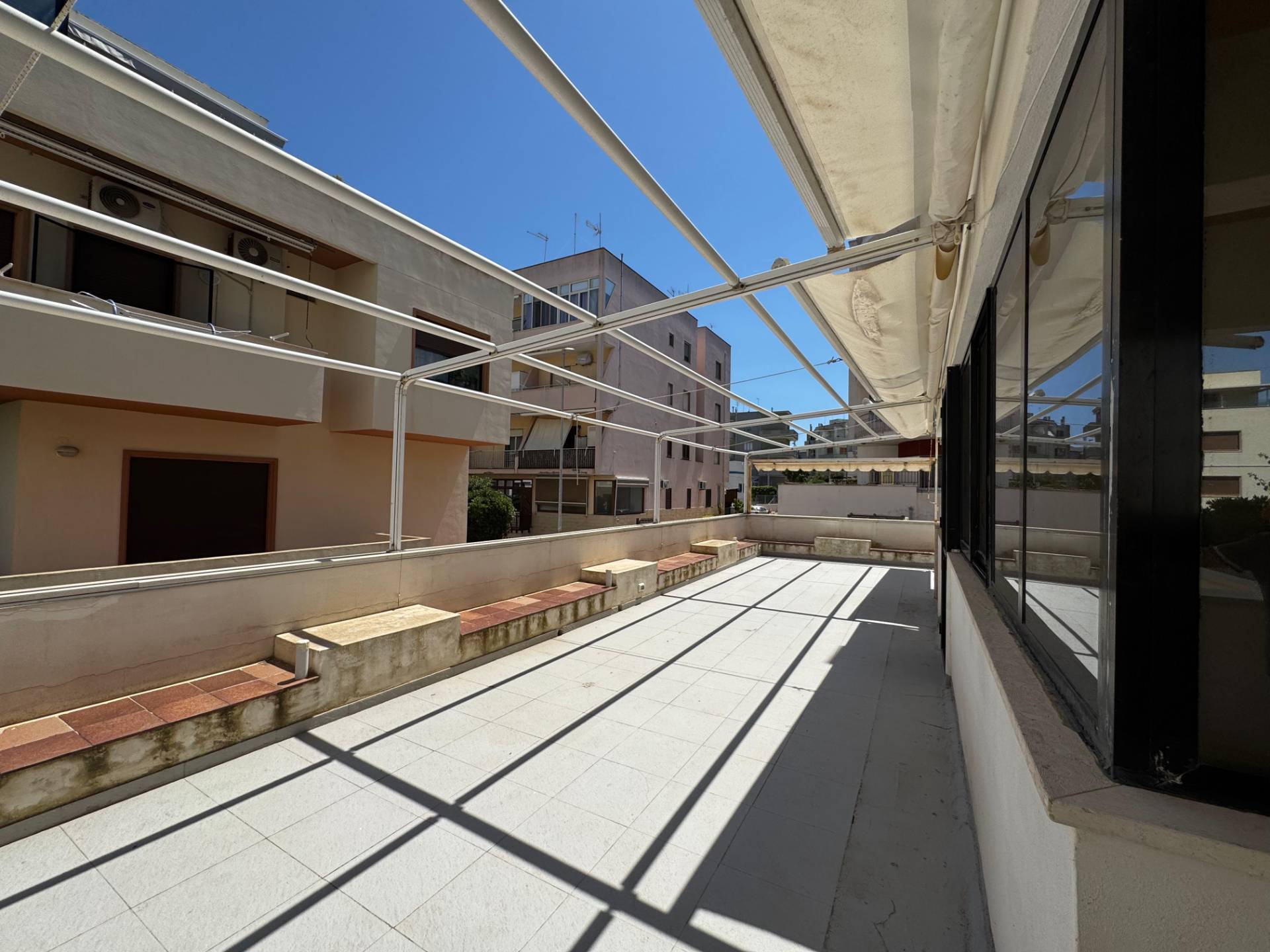 L'immobile, che si sviluppa su due livelli e gode di doppio ingresso indipendente, si estende su una superficie commerciale di circa 210 mq ed attualmente composta come di seguito: Piano rialzato di circa 90 mq composto da ampia e luminosa zona giorno in open space con grande terrazzo a livello vista mare, due camere da letto spaziose, disimpegno e bagno; Piano terra di circa 60 mq composto ad oggi da due spaziosi vani, disimpegno e bagno; Box auto di circa 30 mq terrazza perimetrale che circonda l'immobile per un totale di quasi 200 mq, attrezzata con docce esterne.