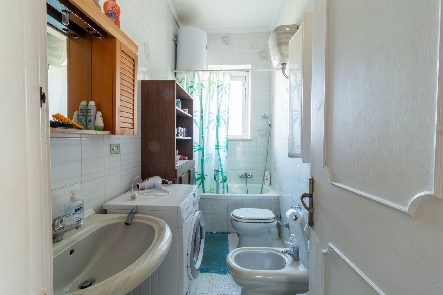 La propriet ha accesso da cortile comune; da scala privata si giunge all'appartamento ampio circa settanta mq e disposto con ingresso, cucina abitabile, salotto, due camere da letto spaziose, bagno, ripostiglio ampio; infine lastrico solare di propriet esclusiva con possibilit di edificare ulteriore cubatura.