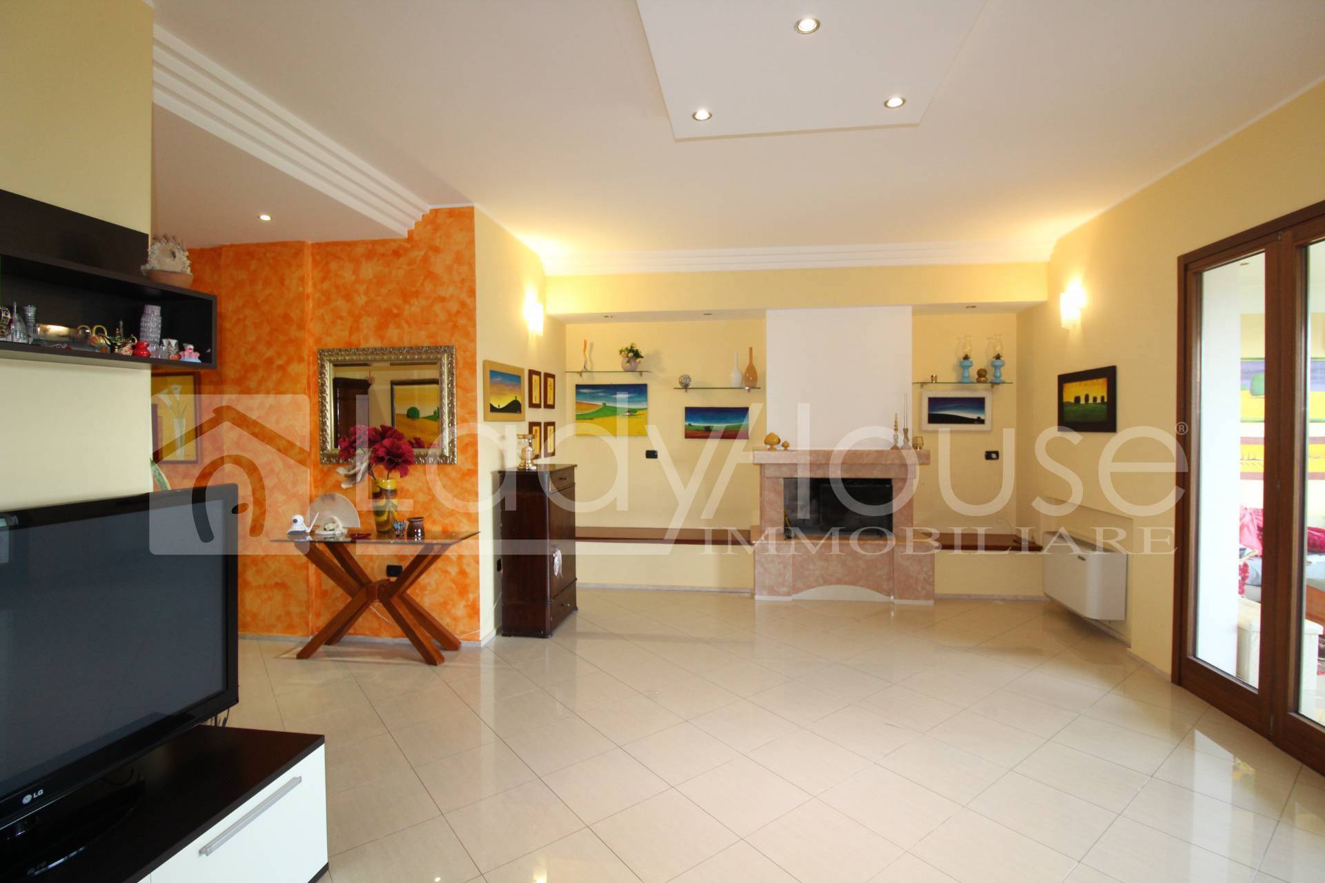 La soluzione, in ottimo stato e ben rifinita si compone come segue: ingresso in ampio soggiorno con camino, cucina, tre camere da letto e doppi servizi.
