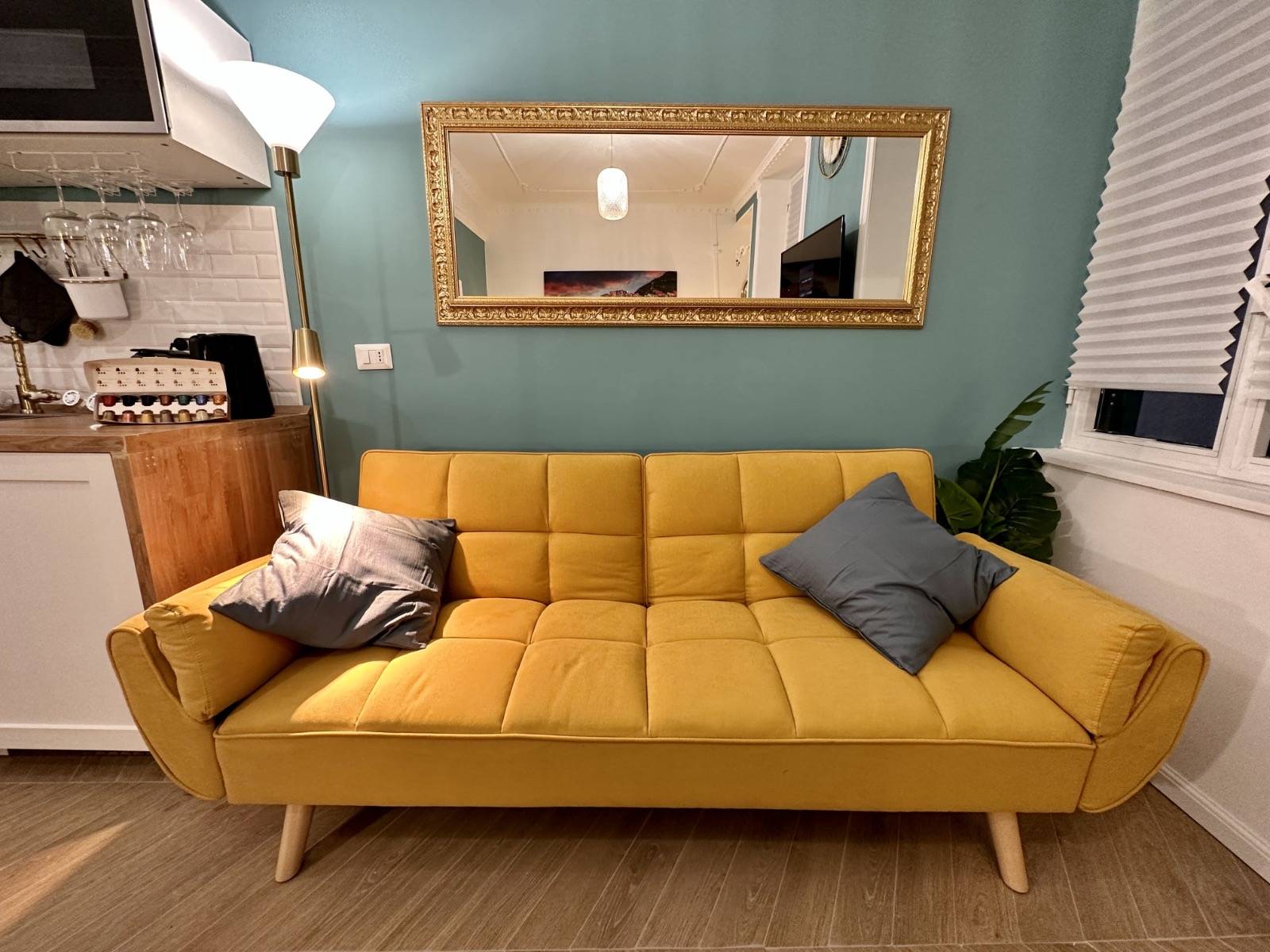 L'immobile composto da un unico vano in cui presente angolo cottura e letto matrimoniale, pi un comodo divano a una piazza e mezzo e infine, bagno.