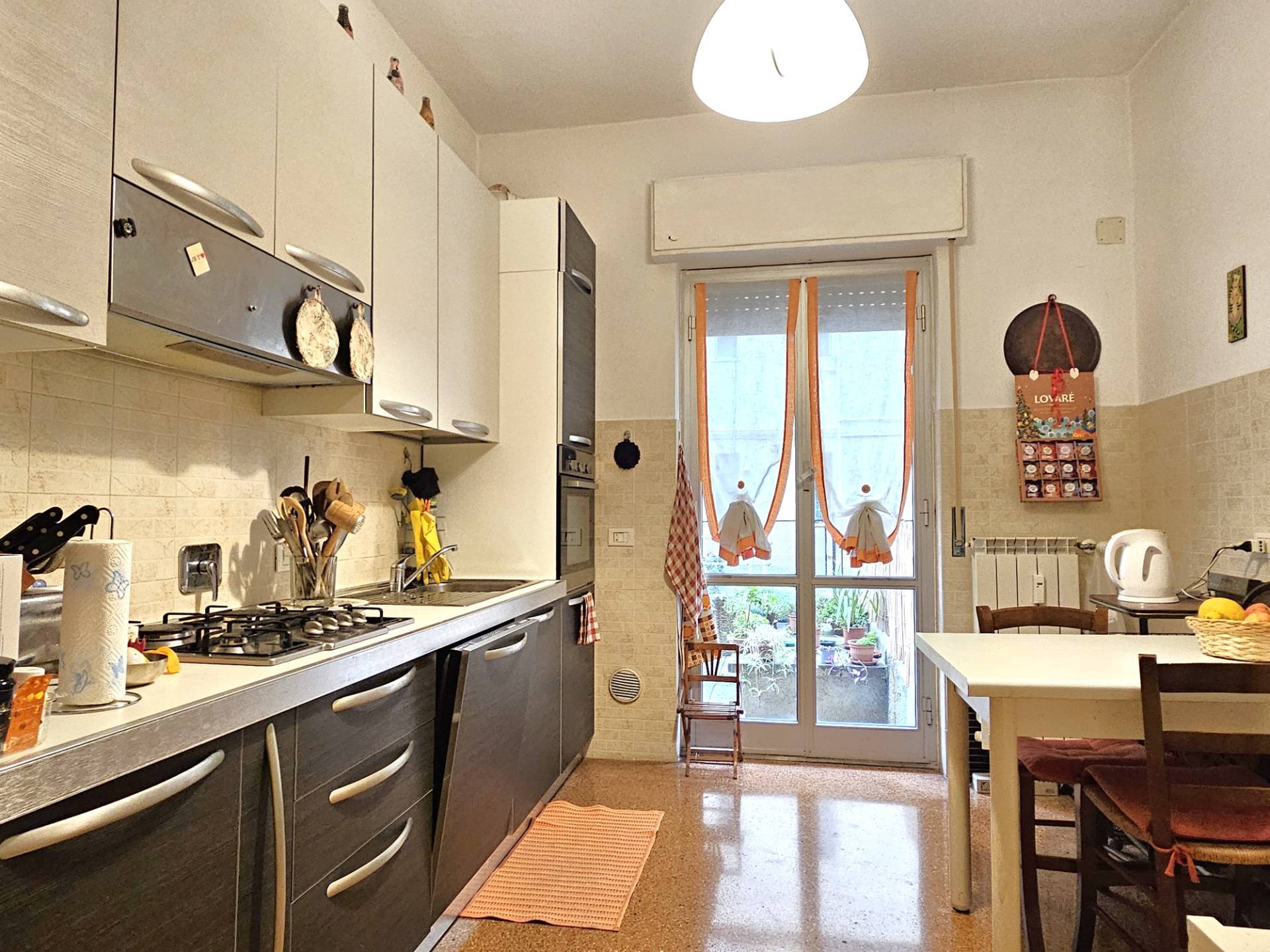GENOVA S. TEODORO GRANAROLO Appartamento in vendita in Via Ferrara vani 5 con grande terrazzo al piano, interni ordinatissimi, edificio moderno con tetto e facciata in ottime condizioni, posizione comodissima a 30 metri da negozi e bus. Interni pronti da abitare con porta blindata ed infissi in alluminio composti da ingresso, cucina, due camere, bagno, ripostiglio.