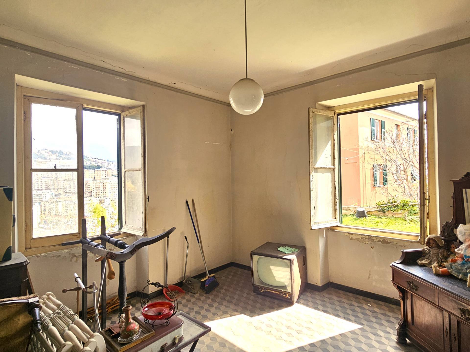 Inoltre con possibilit di acquisto di un ulteriore grande terreno nelle immediate adiacenze ad uso orto, uliveto, arnie per api ecc. ecc. Edificio in posizione tranquilla e caratteristica nel verde di una antica strada genovese con la comodit di avere a 50 metri la fermata della funicolare Principe-Granarolo.