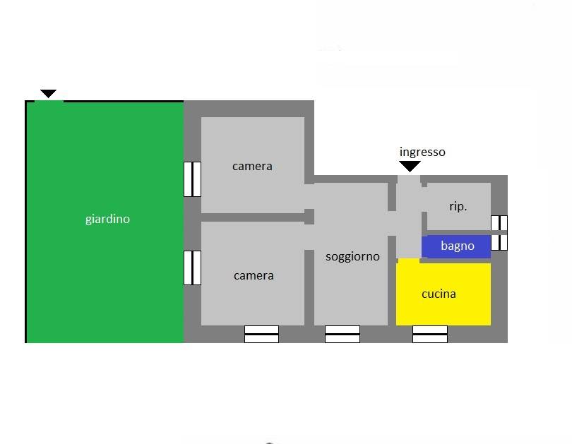 Attualmente limmobile composto da ingresso, soggiorno, due camere, cucina, piccolo bagno che pu essere ingrandito sfruttando il ripostiglio.