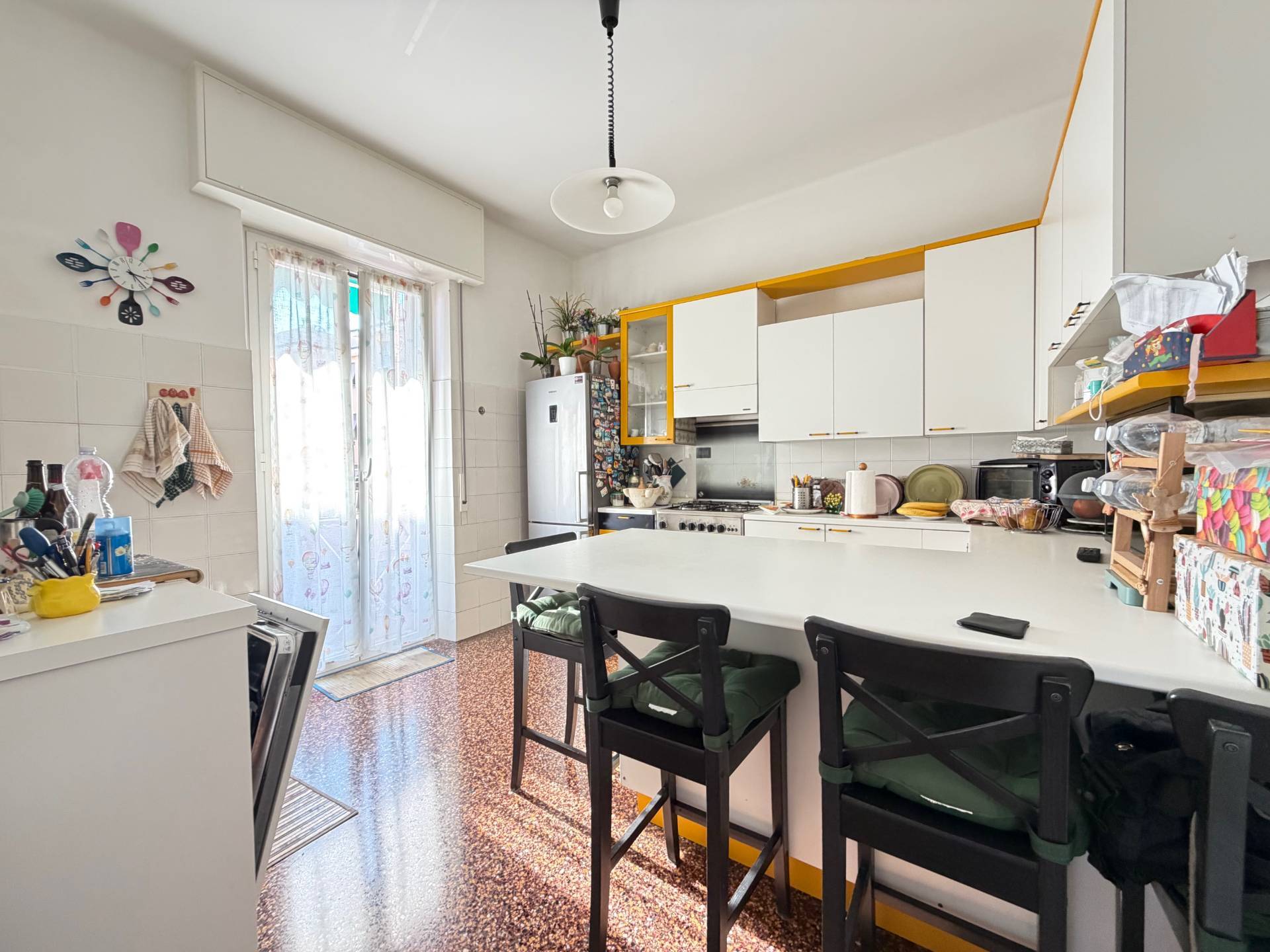 Genova Oregina appartamento in vendita in Via Carbone adiacente a Via Paleocapa, nella parte iniziale della via, in edificio con parti comuni in perfette condizioni in quanto recentemente ristrutturato con cappotto termico, proponiamo ordinati e luminosissimi vani 6 composti da: ingresso, ampio soggiorno, due camere, cucina abitabile, bagno, ripostiglio e una balconata.