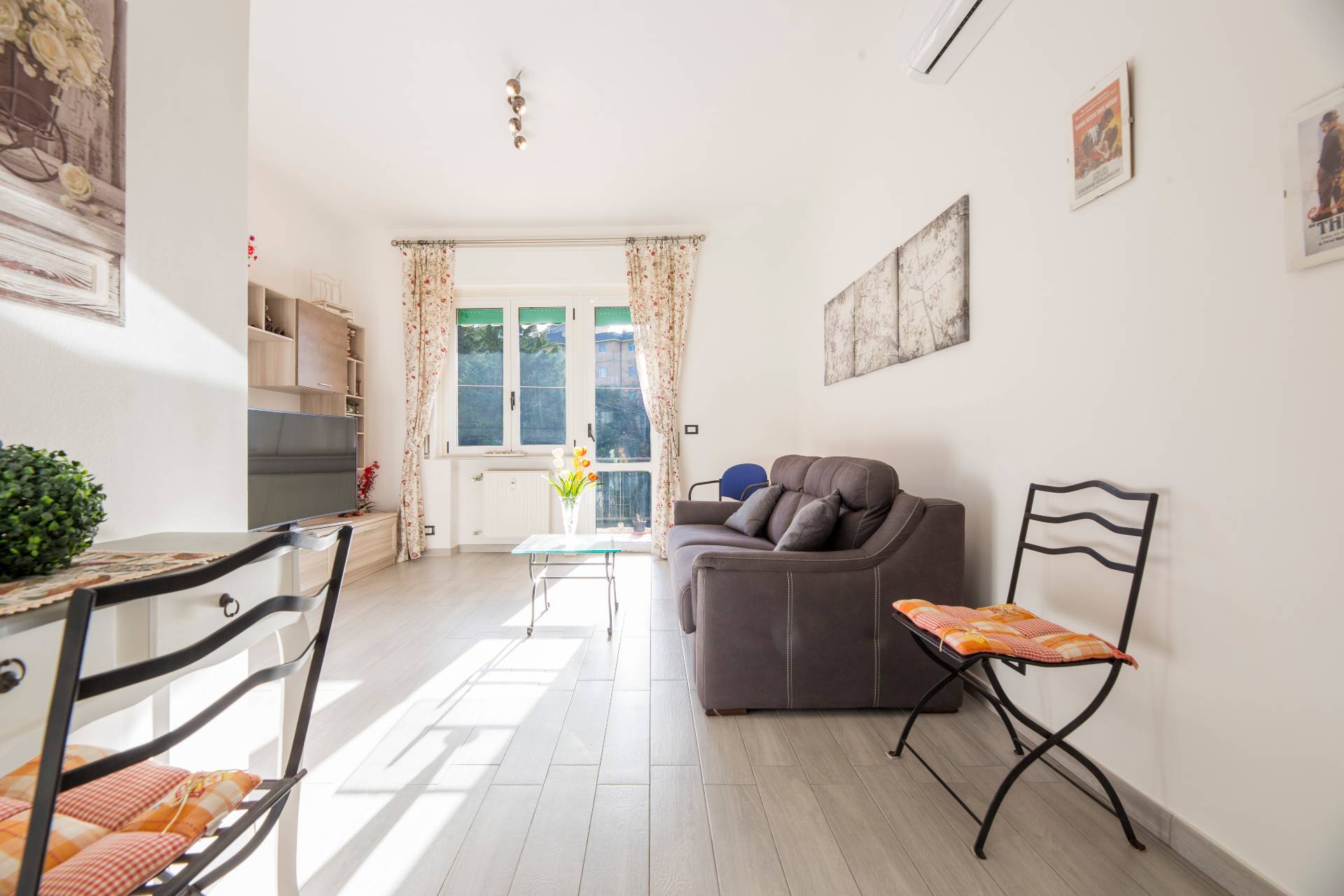 L'appartamento completamente ristrutturato con impianto elettrico certificato, il riscaldamento centralizzato, gli infissi sono doppio vetro ed presente anche impianto di aria condionata con due split.