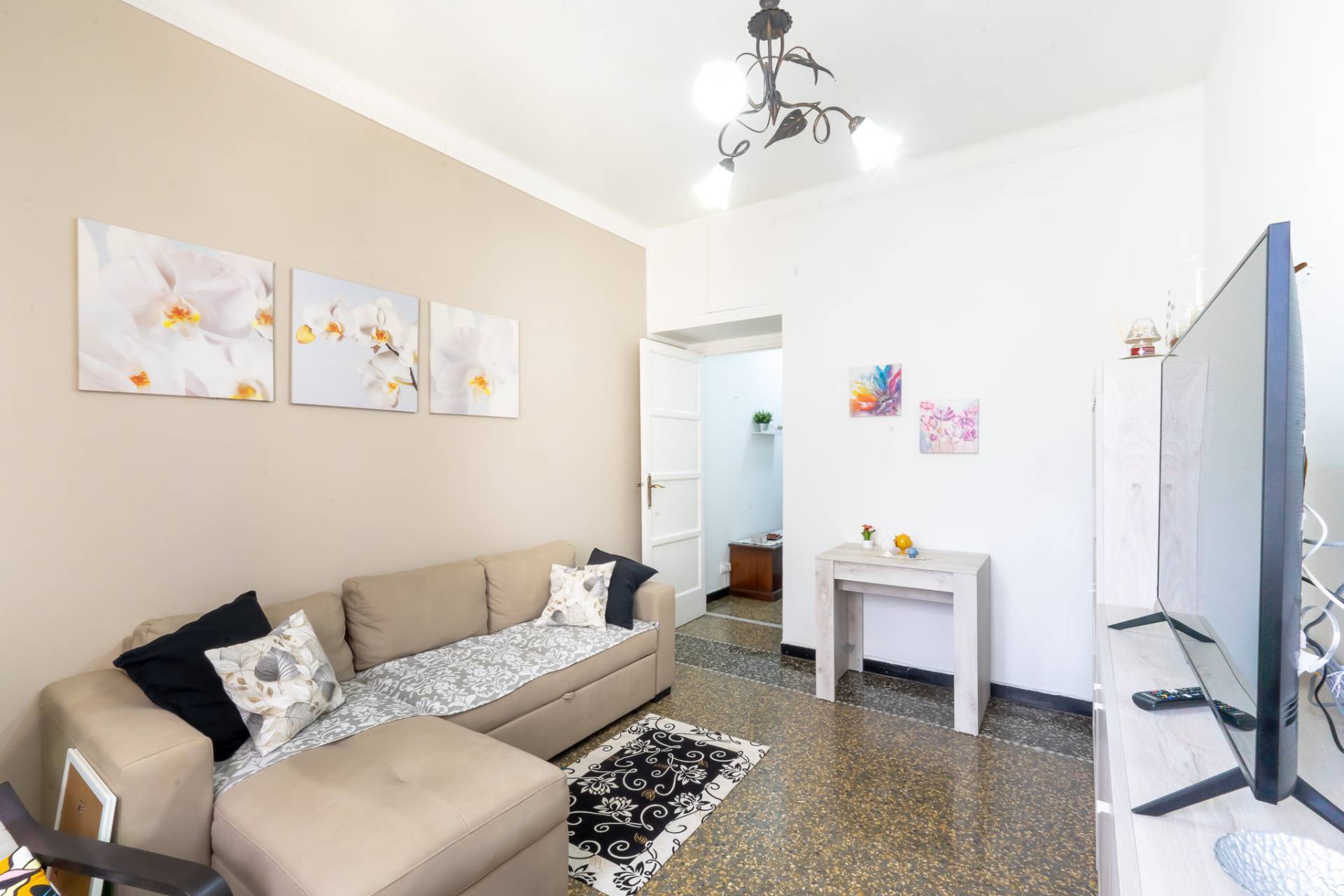 Limmobile si apre su un comodo ingresso che conduce alla camera matrimoniale, alla cucina abitabile con accesso ad un piccolo poggiolo, al bagno finestrato con doccia, a una cameretta e ad una luminosa sala dotata di pratico ripostiglio.