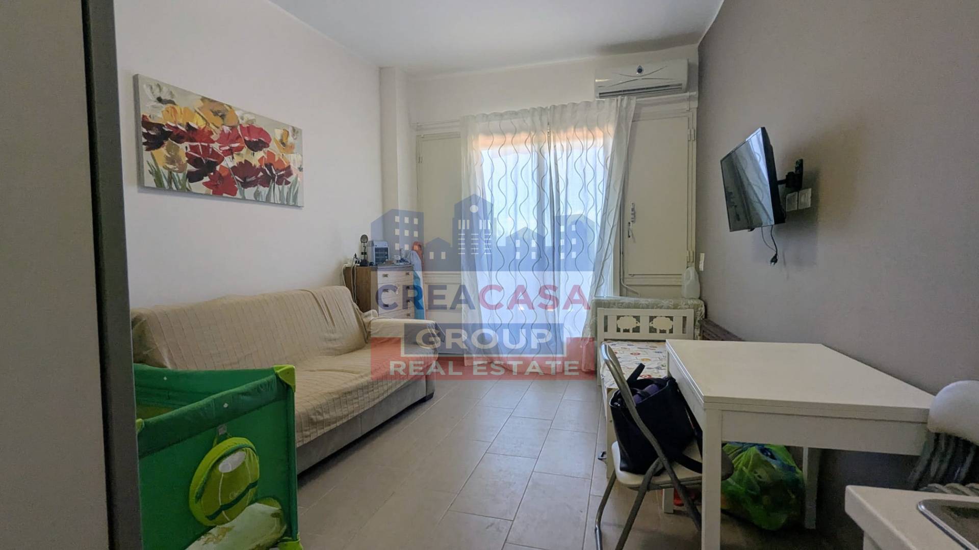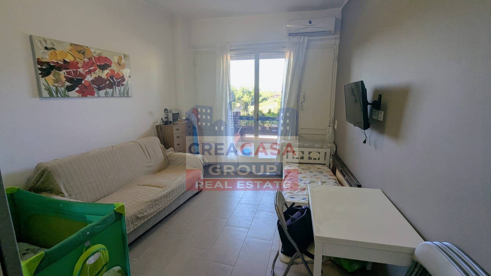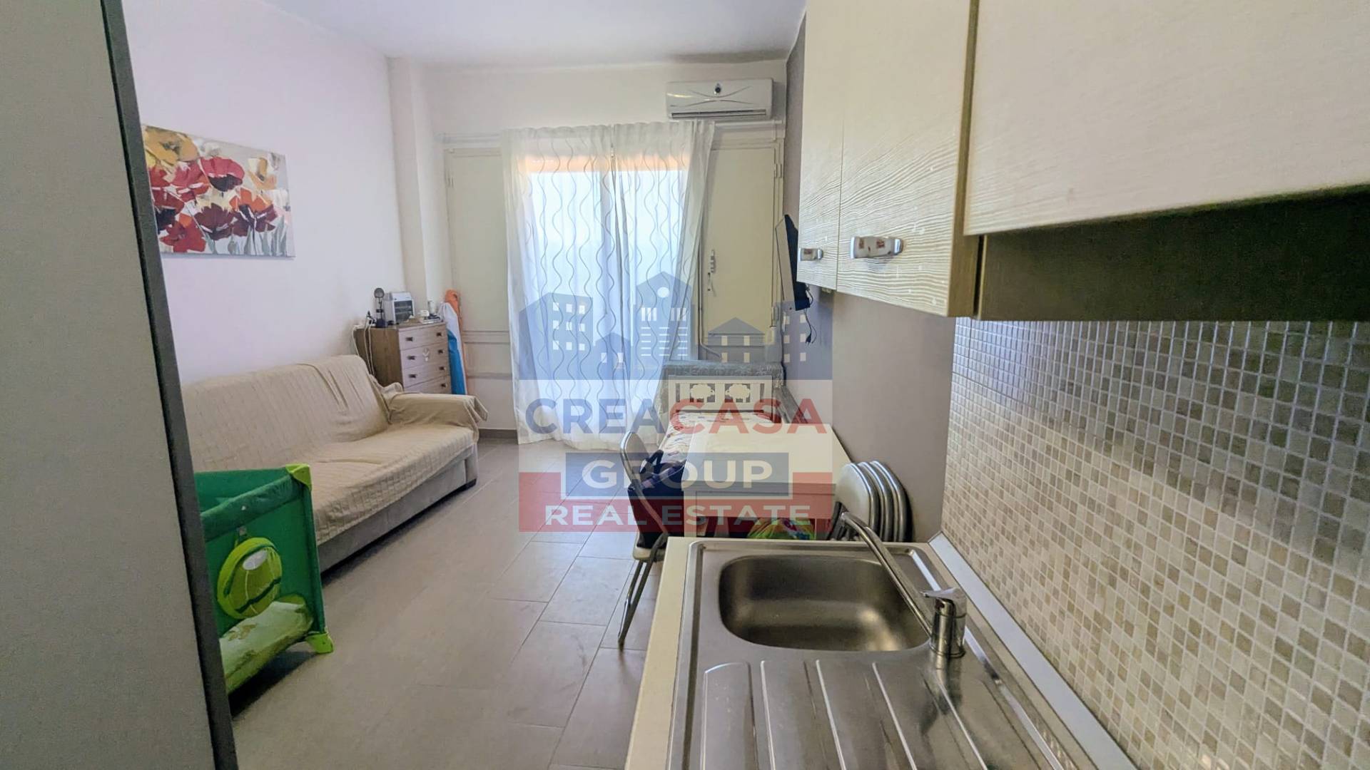 Crea Casa Group propone in vendita panoramico monovano RISTUTTURATO E ARREDATO con vista Etna distante solo 100 mt dalla spiaggia, l'immobile ubicato all'interno del residence "Les Roches Noires" complesso con servizio di portineria , campi da Tennis, piscina, bambinopoli, bar ecc.... L'appartamento posto al primo piano ascensorato, ha una superficie di mq 26, ed composto da un unico vano soggiorno con angolo cottura, bagno e un grazioso terrazzino di mq 7 con vista Etna. L'immobile in ottime condizioni immediatamente abitabile e viene venduto completo di mobilio.