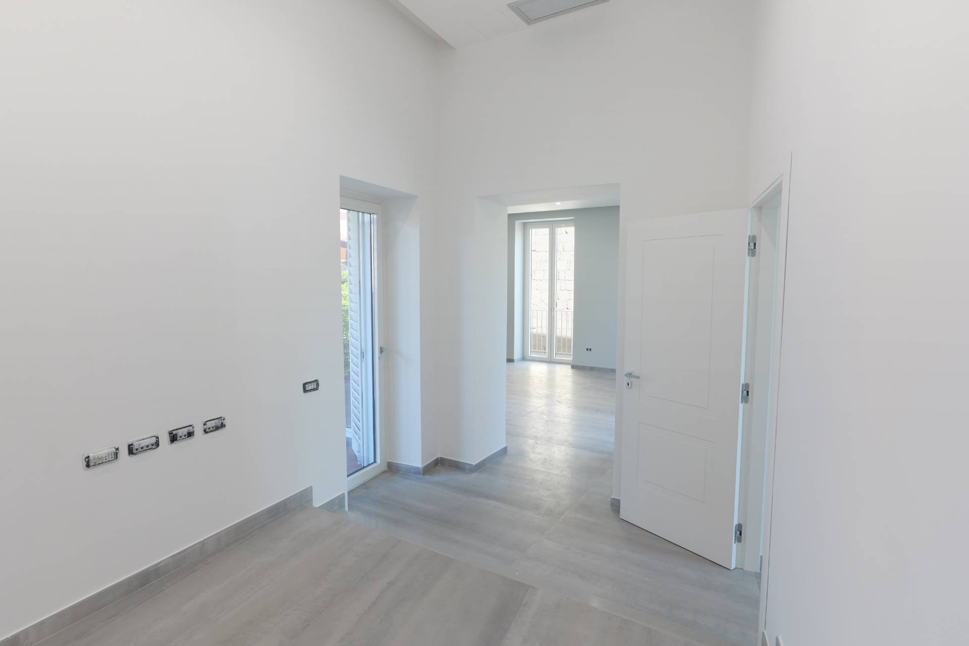 La zona notte ben separata e studiata nei dettagli: dalla cucina si accede a un corridoio che conduce a un primo bagno e a una camera da letto, proseguendo si trova una seconda camera e infine una terza stanza ancora pi riservata, completa di cabina armadio e bagno privato, una vera e propria suite che garantisce comfort e privacy.