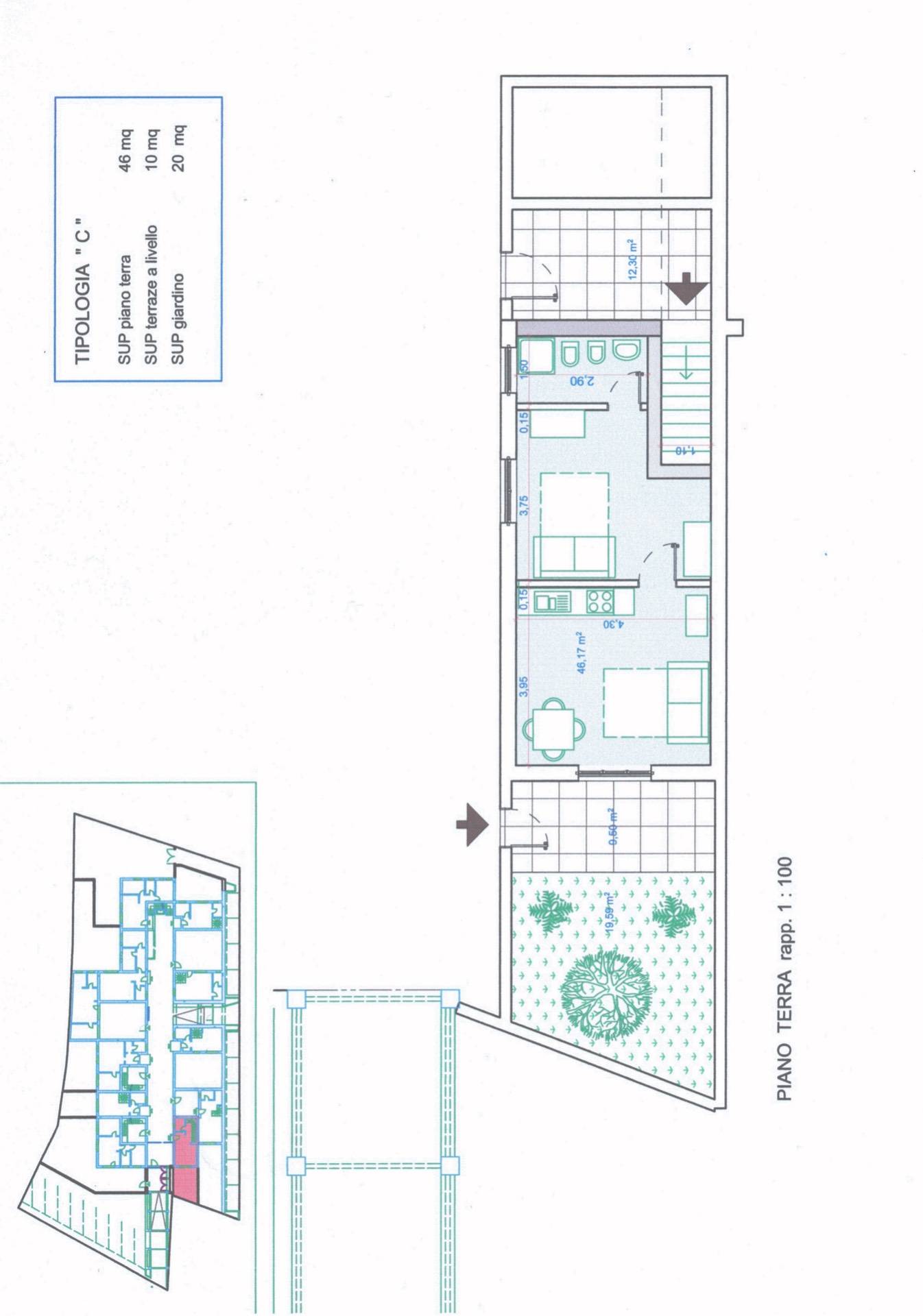 Tra le varie soluzioni in costruzione, proponiamo un luminoso bilocale costruito al piano terra di circa 61 mq. commerciali con terrazza e giardino di pertinenza.