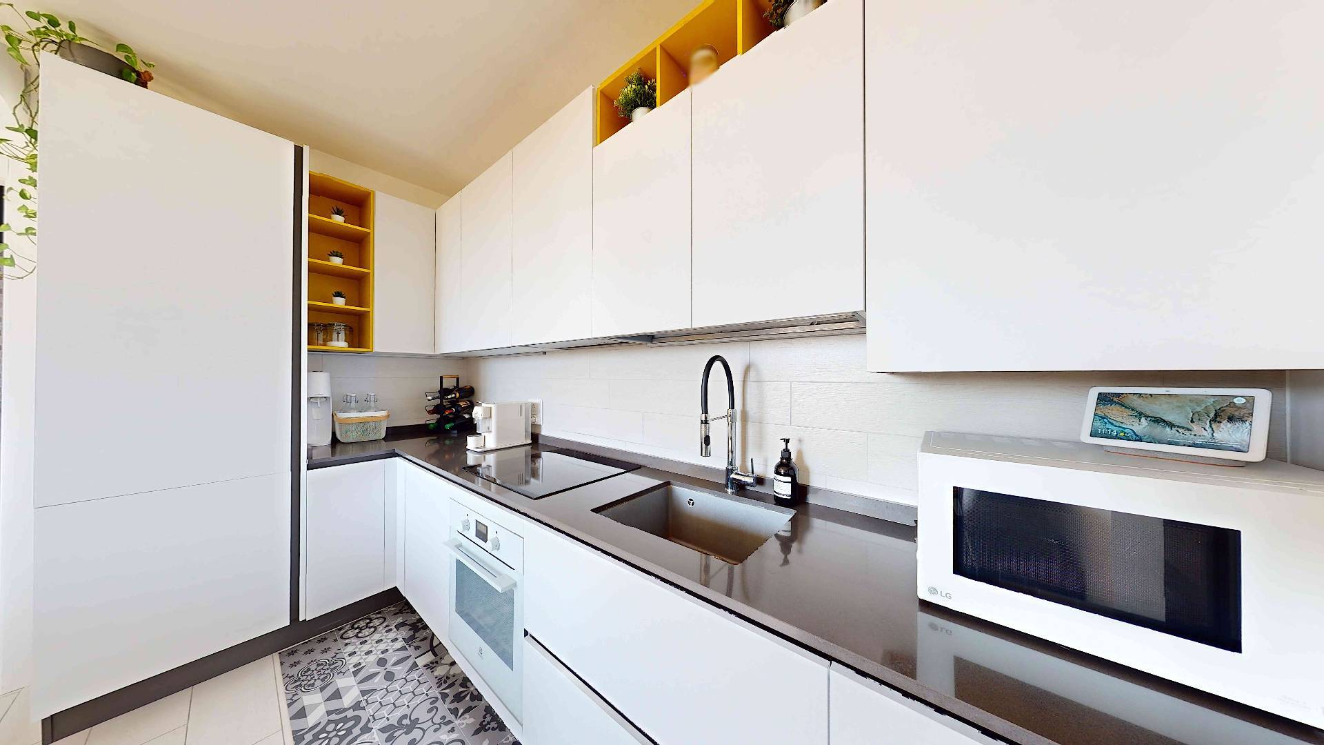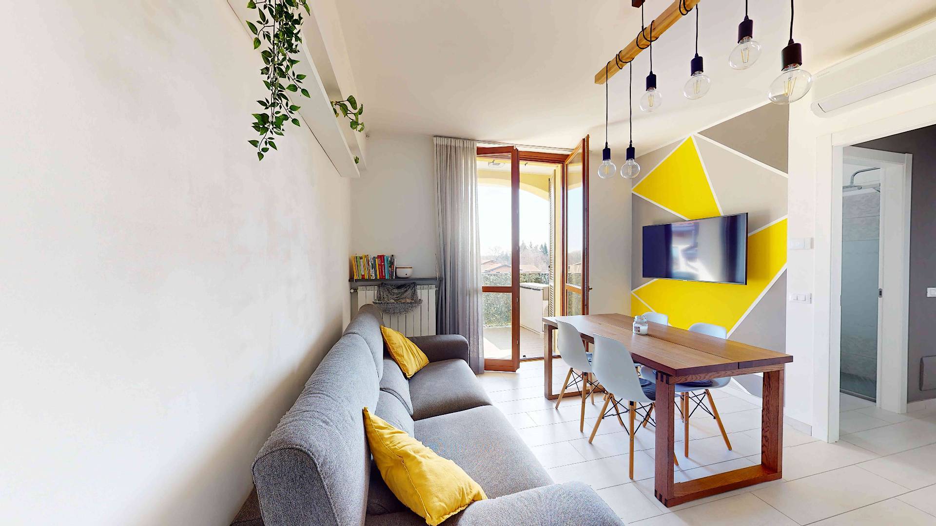 La porta blindata ci accoglie in un disimpegno dover poter arredare un capiente armadio quattro stagioni, dunque troviamo subito uno spazio pluriuso: l'ambiente ideale per dar sfogo alle proprie passioni o uno studio per coloro che hanno bisogno di fare smart-work. Ed eccoci poi all'intimit moderna che si respira nel LIVING con ELEGANTE CUCINA A VISTA: emblema di quell'ARMONIOSA FUNZIONALITA' che poche case possono vantare davvero, e poi godetevi l'ariosa visuale del suo TERRAZZINO RIPARATO, sfogo esterno facilmente usufruibile anche nelle mezze stagioni.