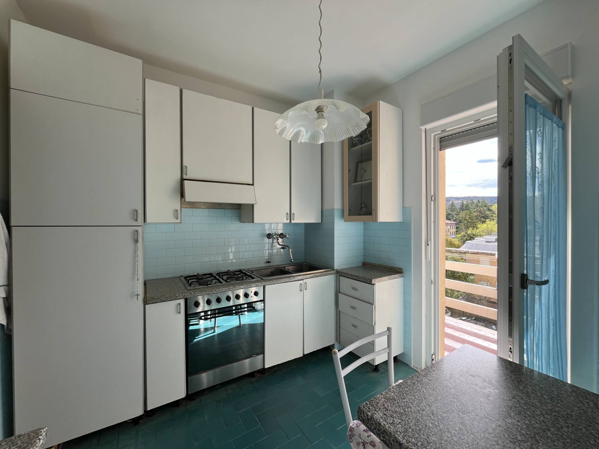 La zona giorno comprende anche una cucina separata e abitabile, servita da una seconda terrazza.