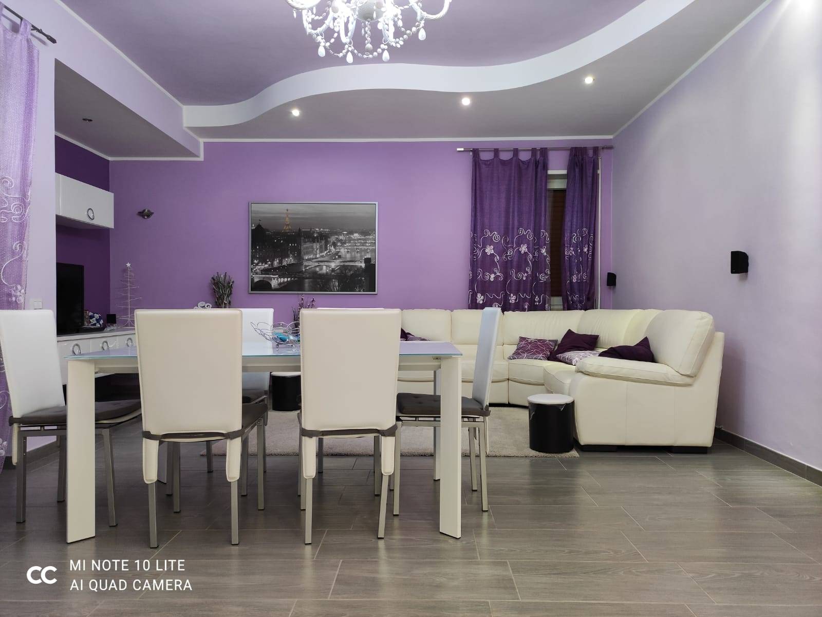 L'ingresso principale si apre su un accogliente e luminoso soggiorno, arredato con gusto e dotato di un comodo divano e di una moderna zona pranzo.