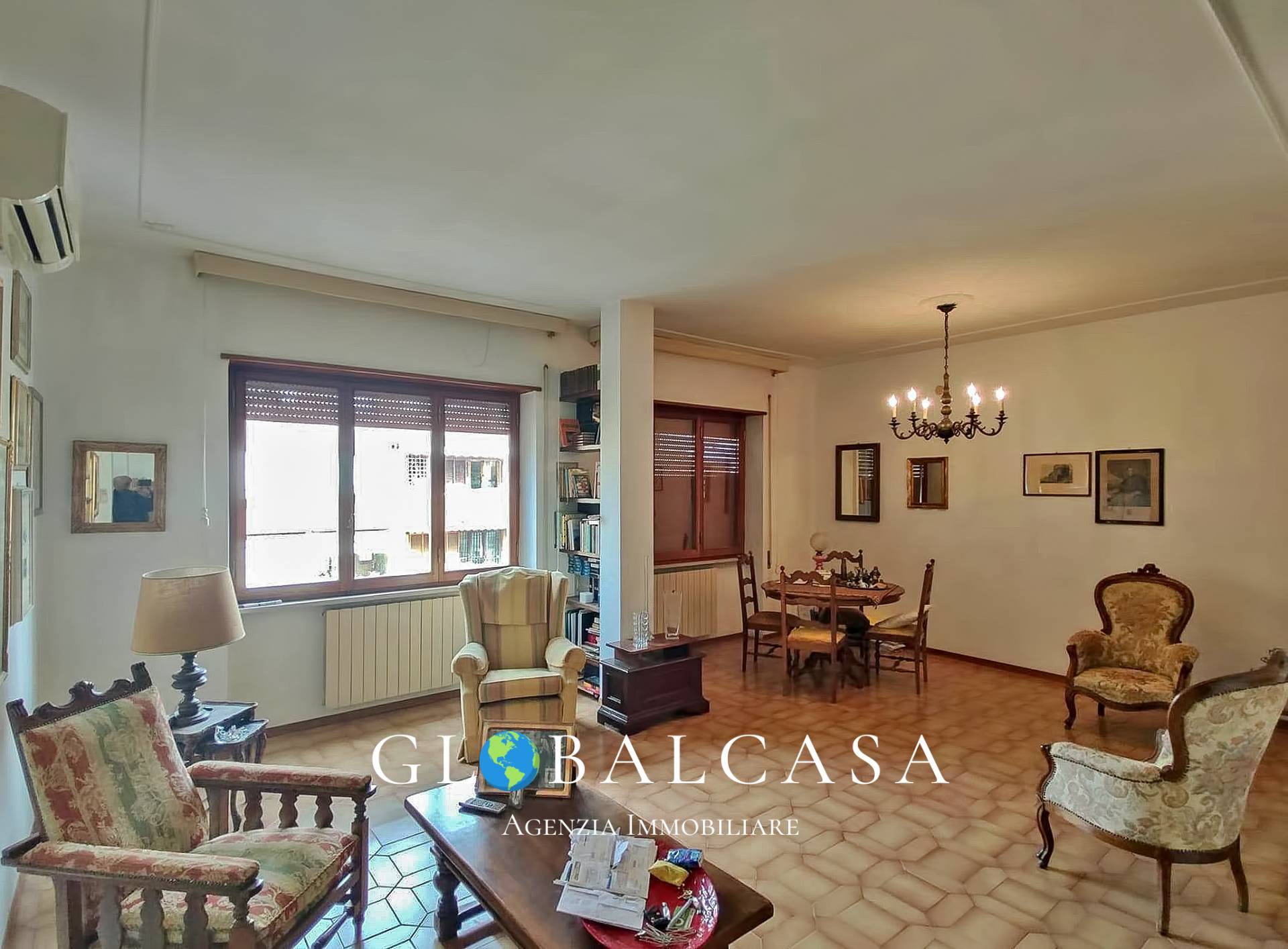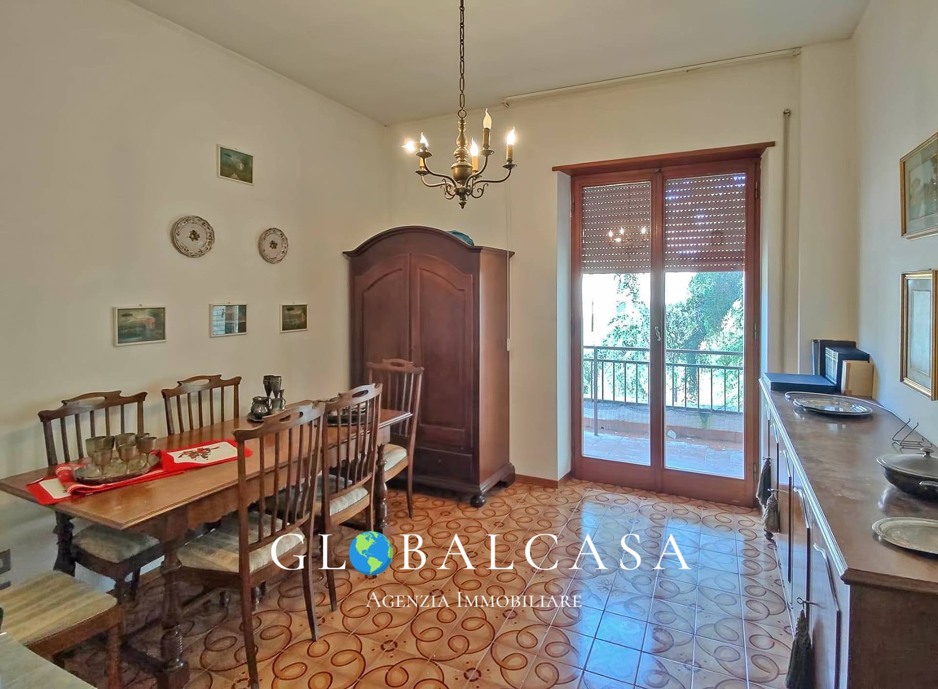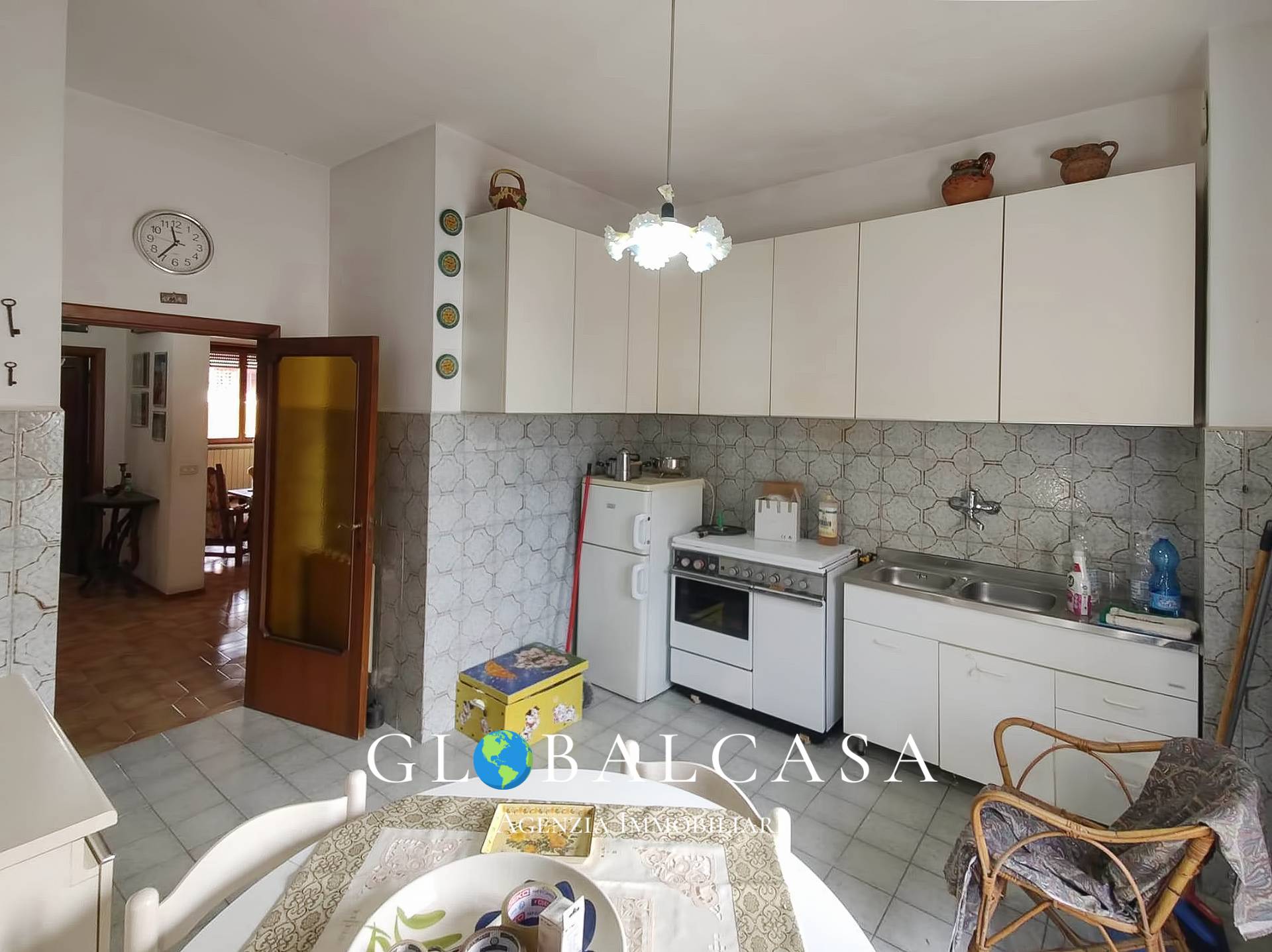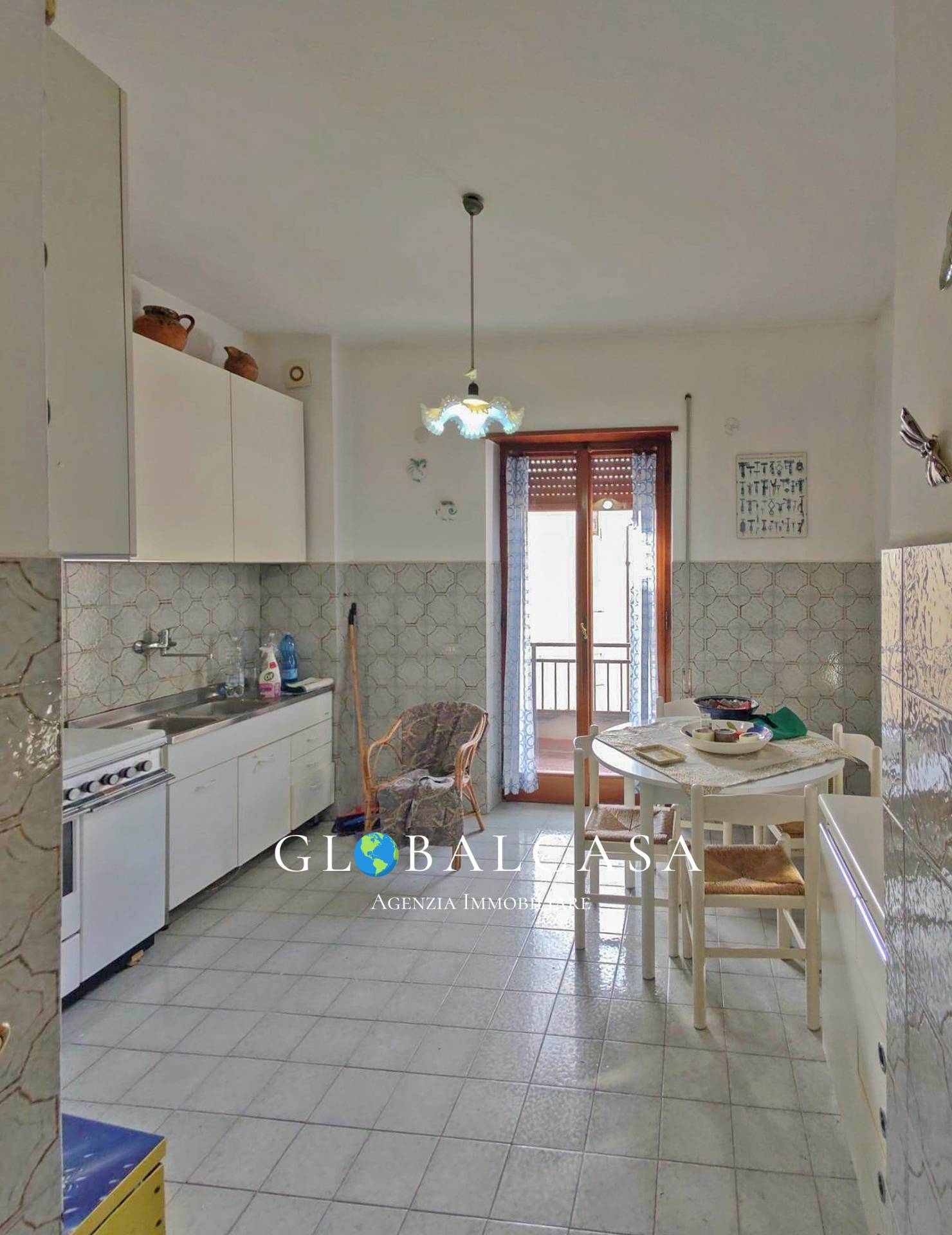 ingresso su grande sala, cucina abitabile con terrazzo, due camere entrambe con terrazza, ripostiglio, bagno con finestra, metano autonomo, infissi in legno con doppio vetro, l'immobile ben tenuto ma da ristrutturare.