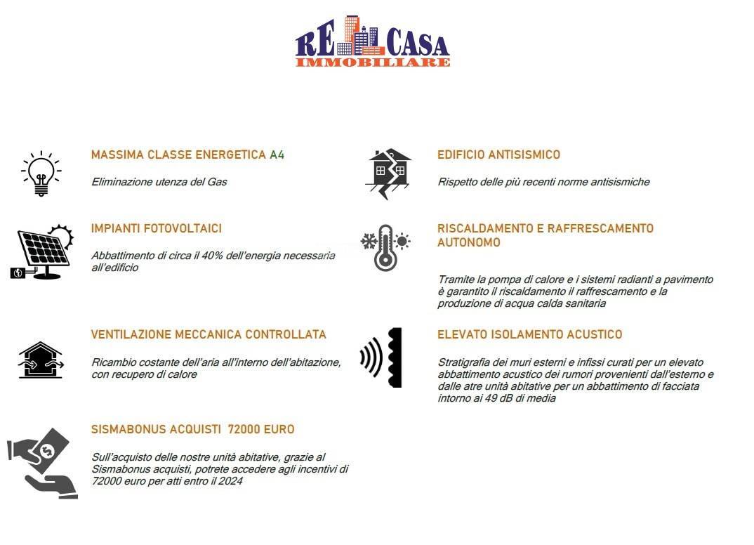 Consegna prevista per settembre/ottobre 2024. Il fabbricato verr realizzato con i migliori standard qualitativi quali riscaldamento e raffrescamento autonomo tramite pompa di calore anche per la produzione di acqua calda sanitaria, ventilazione meccanica controllata con recupero di calore e impianto insonorizzato, tapparelle coibentate e motorizzate con cassonetto a scomparsa, finestre in PVC con doppio vetro termoacustico.