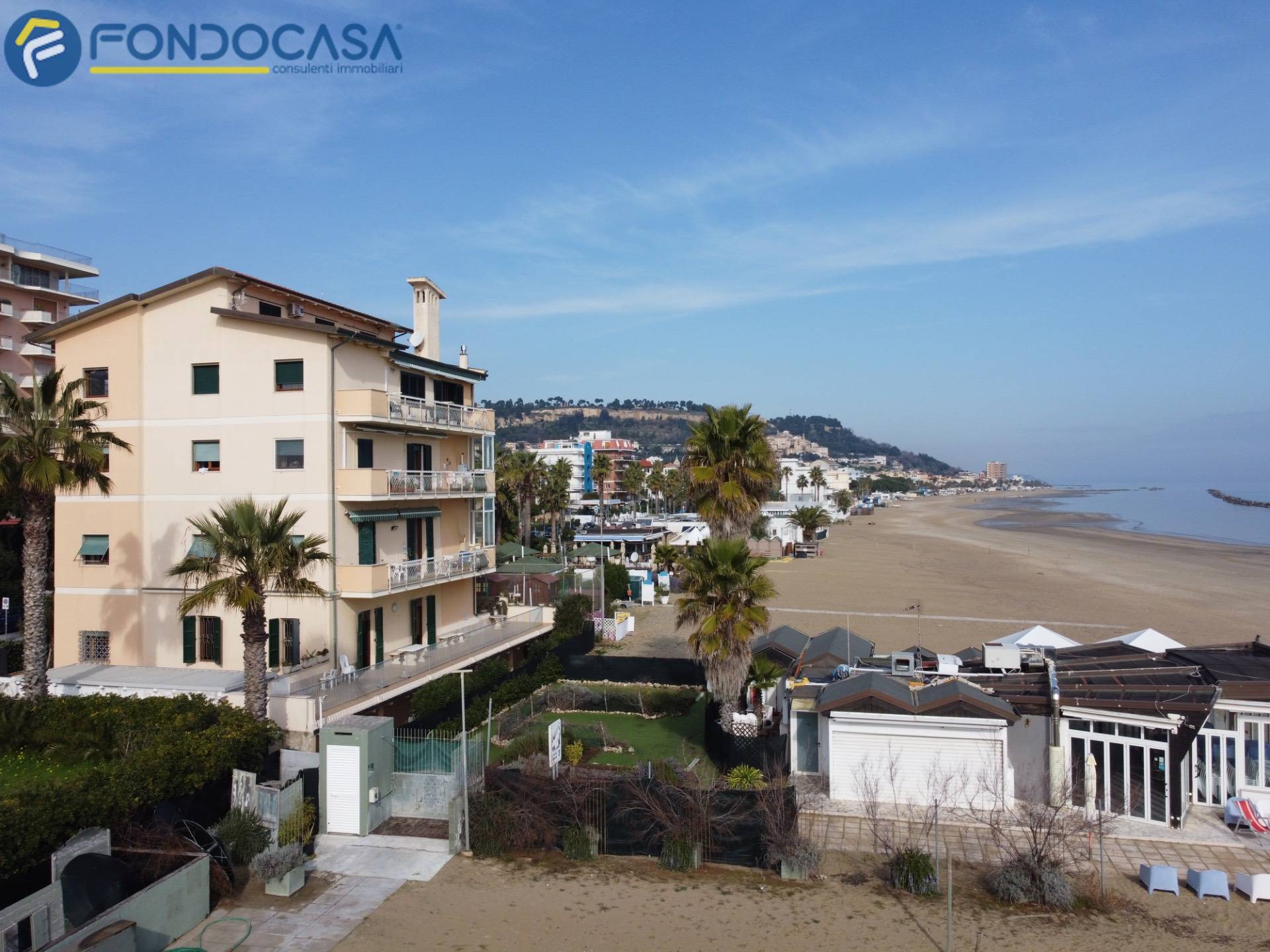 GROTTAMMARE - APPARTAMENTO FRONTE SPIAGGIA Sul lungomare di Grottammare, in una posizione semplicemente irripetibile, proponiamo in vendita in esclusiva Fondocasa un appartamento che si trova letteralmente sulla spiaggia: ledificio affaccia direttamente sullarenile, senza alcuna strada a separare casa e mare. Da un lato il mare, dallaltro il lungomare, i servizi e il centro di Grottammare, con San Benedetto del Tronto a pochi minuti.