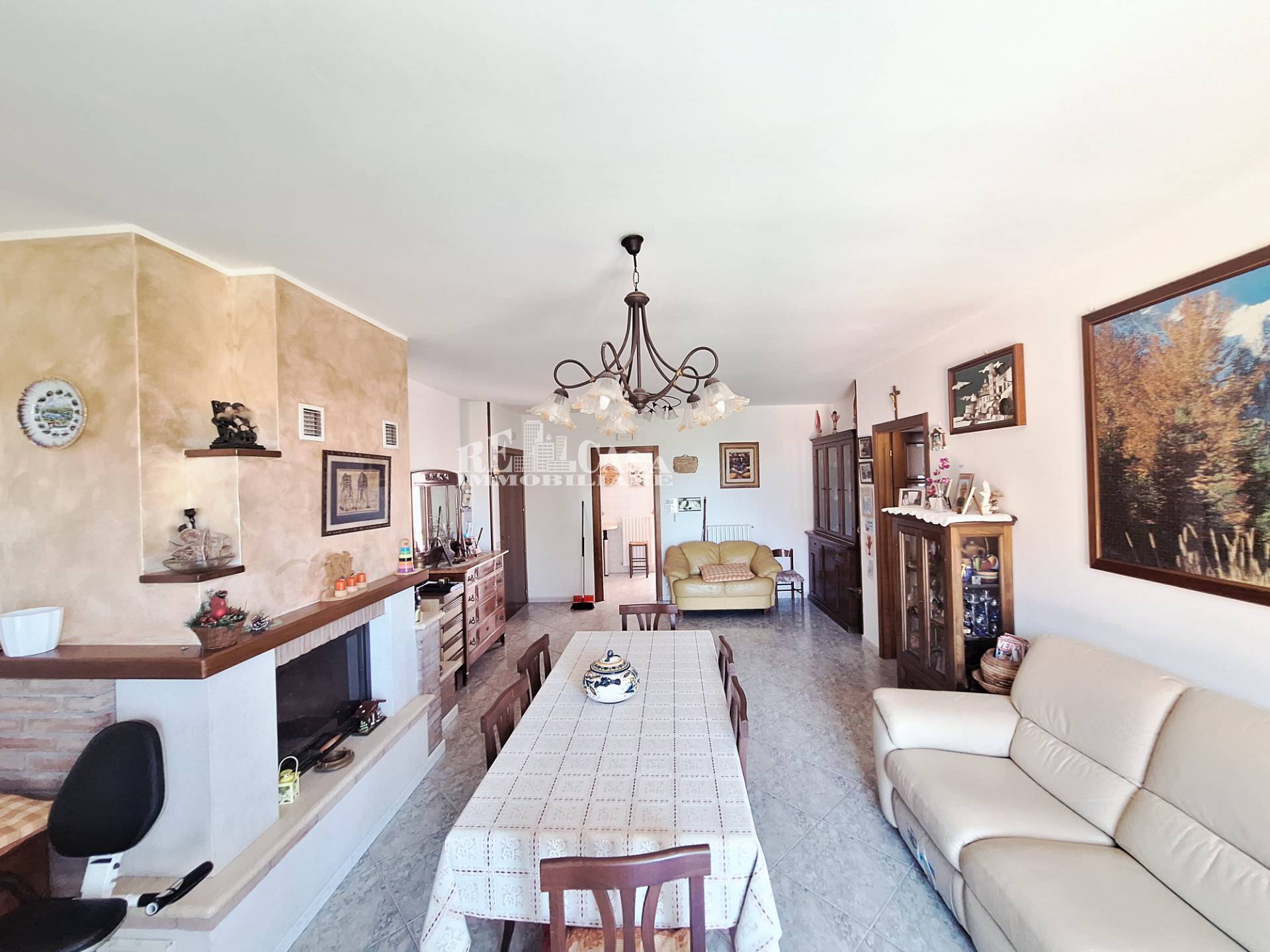 Appartamento al piano primo livello strada, con ampia corte pavimentata condominiale, ed uno spazio riservato per due posti auto scoperti, superficie di mq 125 composto da, un ripostiglio lavanderia nell'atrio condominiale, ingresso su ampio soggiorno con camino, cucina abitabile, tre camere da letto di cui due matrimoniali ed una singola, due bagni finestrati, di cui uno ampio con vasca, ed uno con doccia.