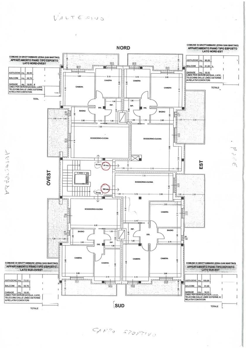 Appartamento al Piano Terzo e ultimo - DI NUOVA COSTRUZIONE - delle dimensioni di 90 mq. circa, composto da soggiorno con angolo cottura, 2 camere da letto matrimoniali, 2 bagni e 2 terrazzi per complessivi 31 mq. circa.