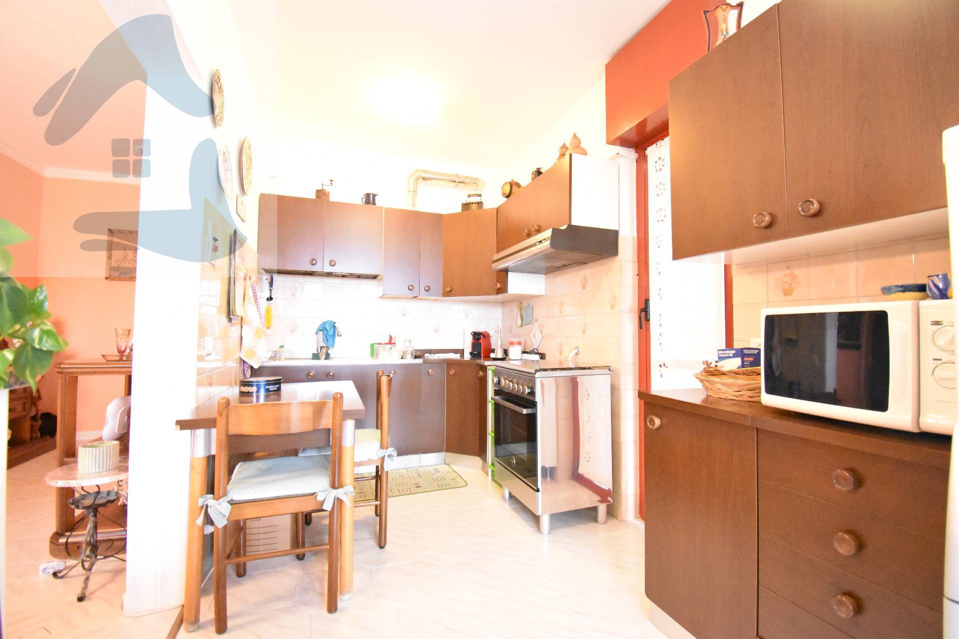 La cucina abitabile e aperta sul soggiorno, con accesso a due comodi balconi che regalano sfoghi esterni ideali per momenti di relax o per chi ama coltivare qualche pianta.
