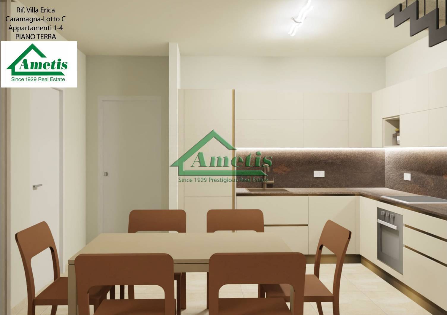 Appartamento - AC01 - Porzione di villetta disposta su due livelli di 102mq, libera su tre lati con giardino privato di 227mq, loggia e terrazzo di 14mq e garage privato di 22mq, composta al piano terra da ingresso su soggiorno con angolo cottura a vista, bagno e camera/studio e al primo piano disimpegno, due camere da letto e bagno.