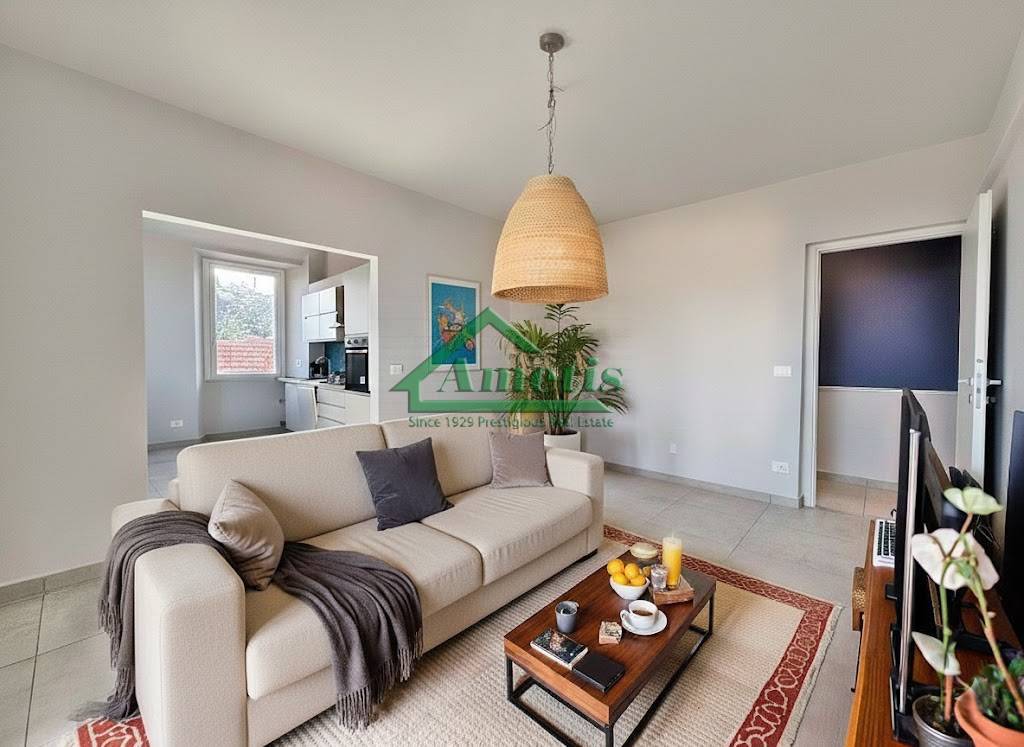 Il soggiorno living di 32mq, ricreato da due ambienti, ha la cucina incorporata, gi inclusa, dai toni perfettamente abbinati, per dare gi il senso di casa, vista mare. Le due camere da letto matrimoniali sono di taglio classico e in quella rivolta al mare presente un ottocentesco armadio a muro originale.