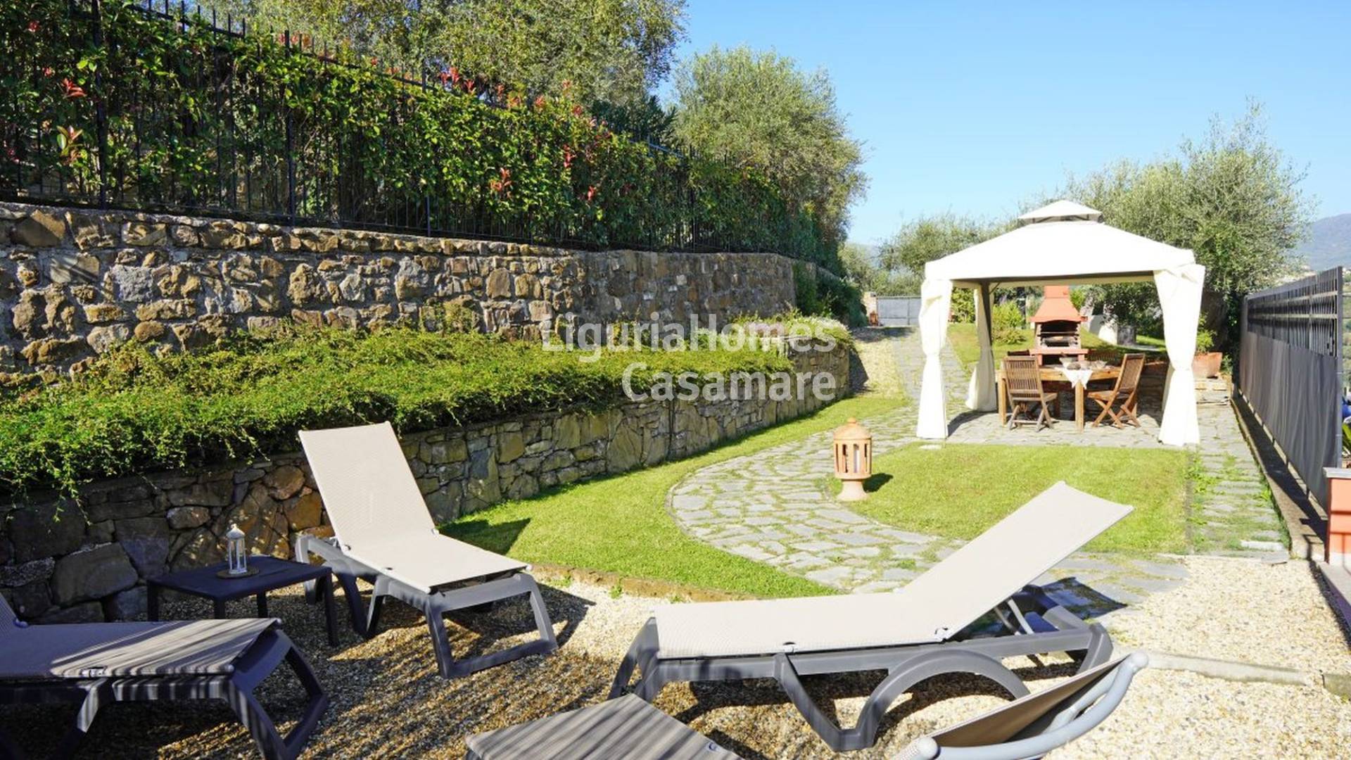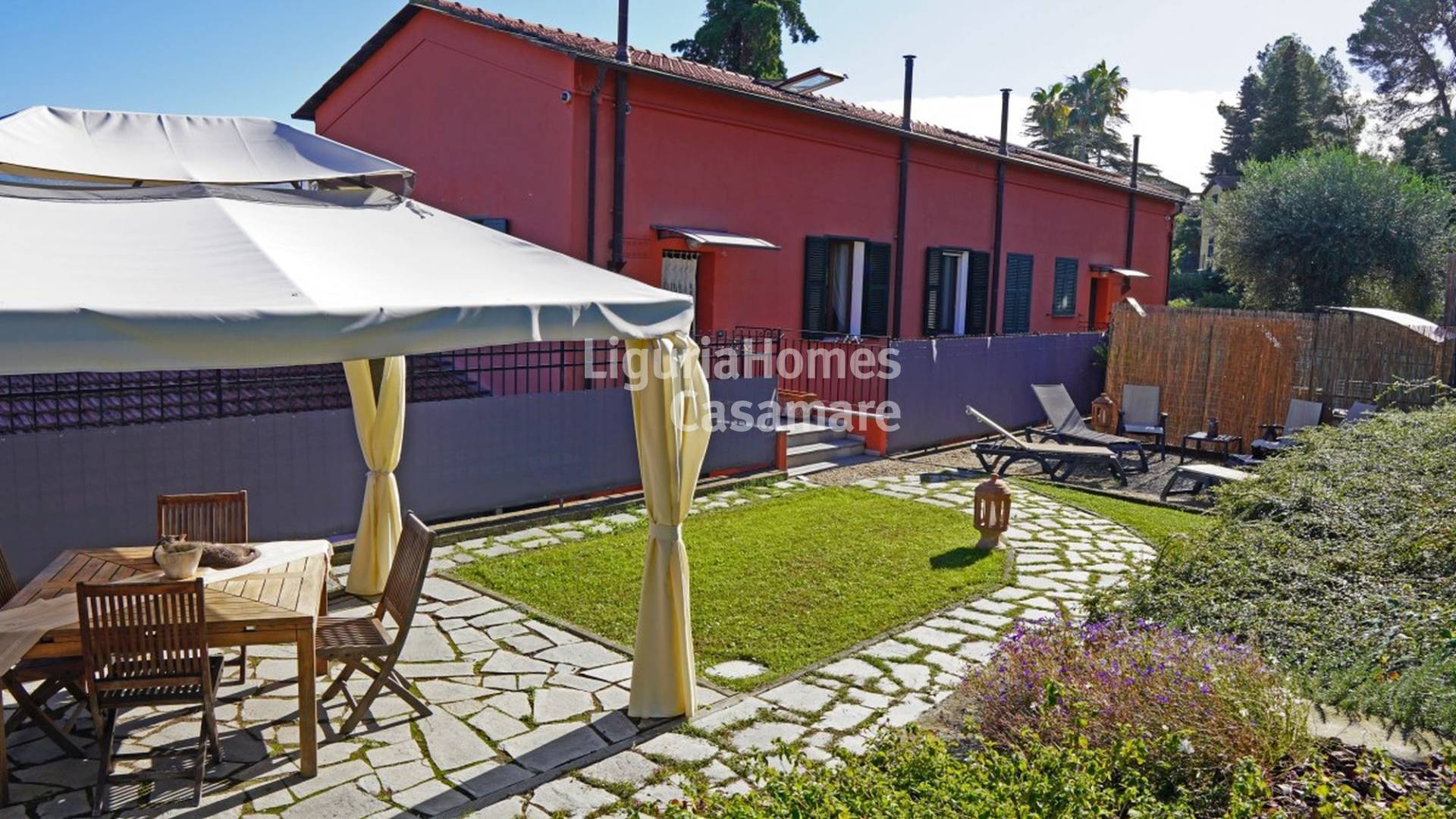 Elegante appartamento con giardino mediterraneo e box auto in vendita a Imperia.