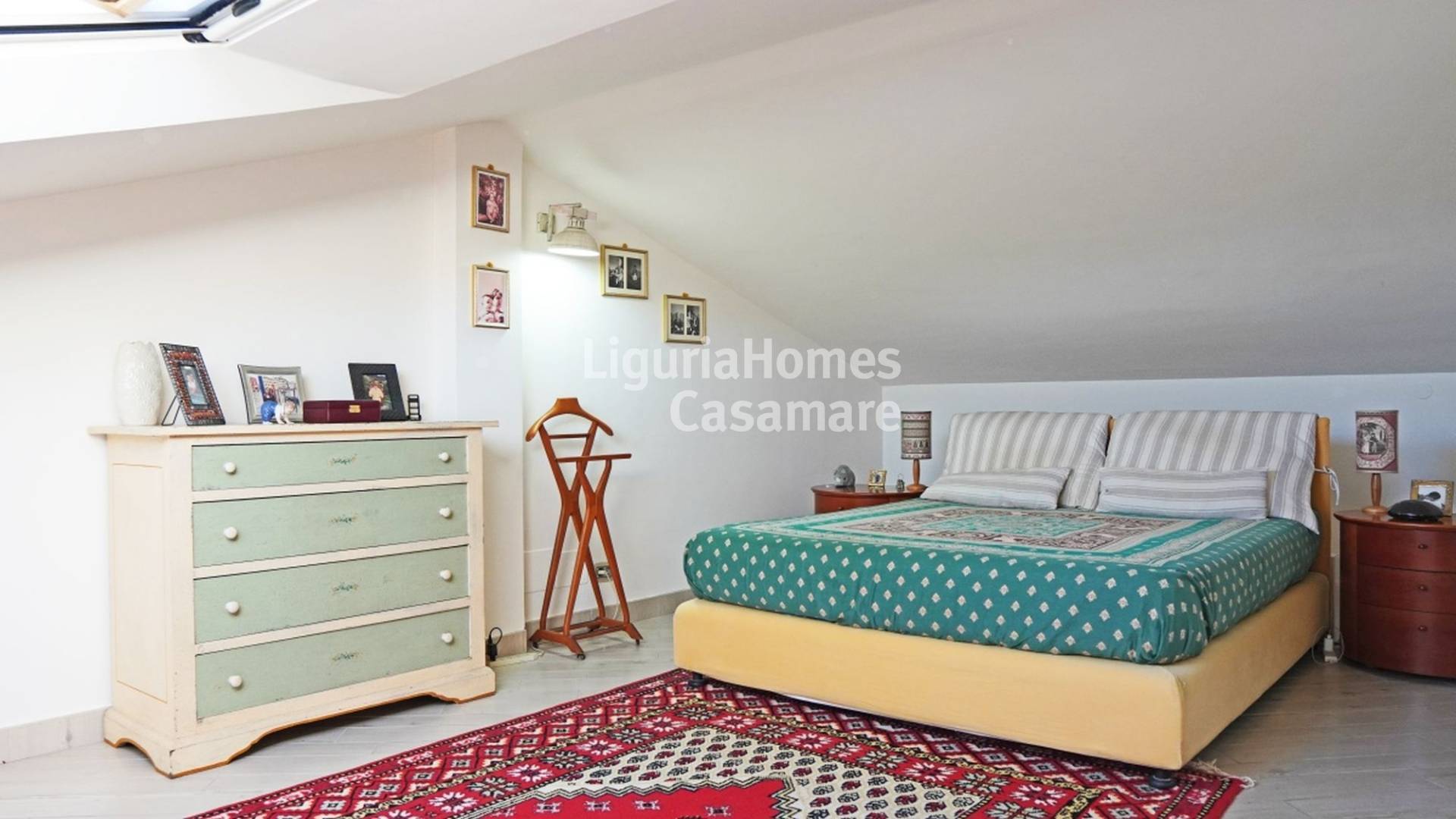 Salendo una bella scala si giunge alla zona notte mansardata con due camere da letto e un altro bagno anch'esso finestrato.