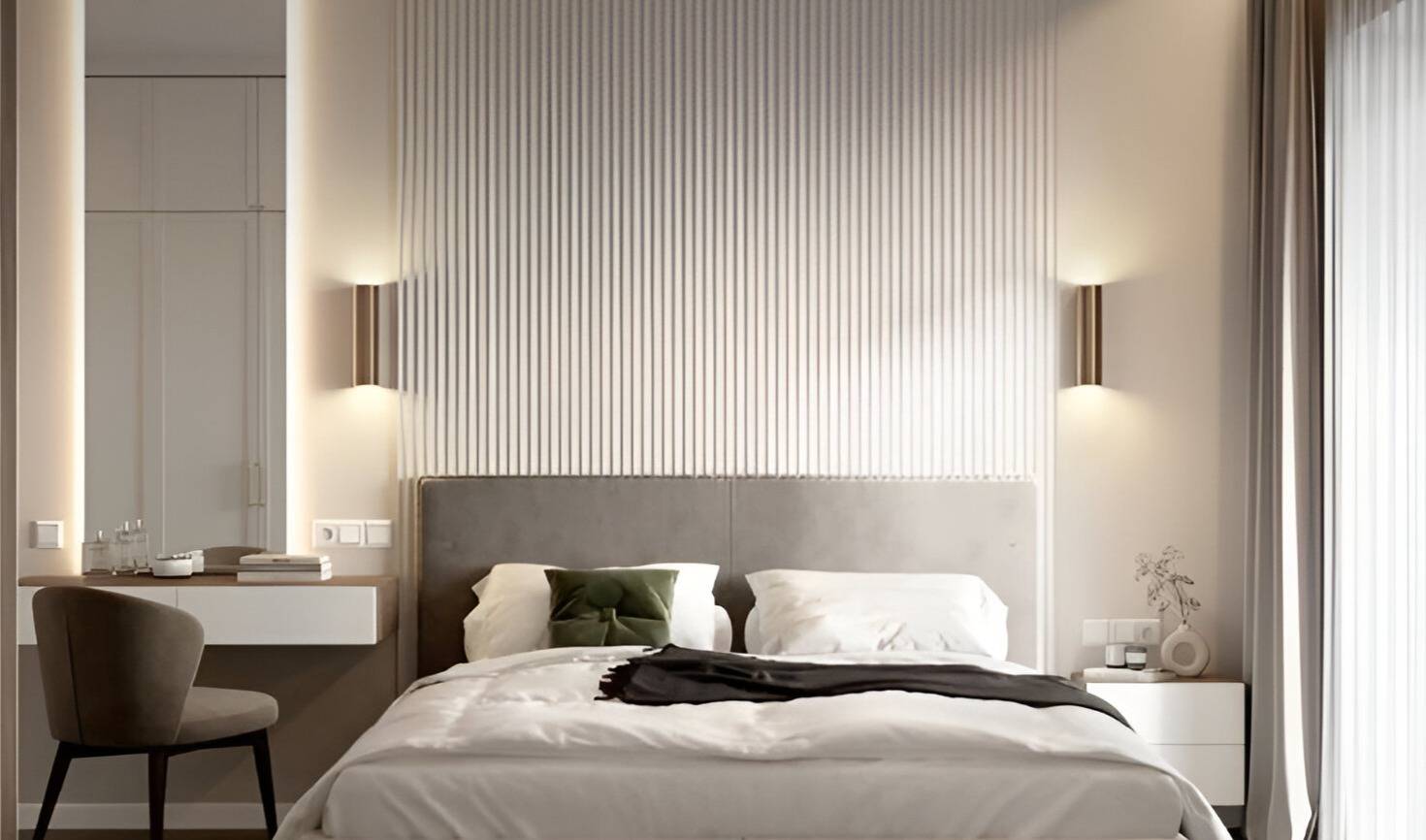 La camera matrimoniale, ampia e silenziosa, offre un rifugio intimo e rilassante, mentre il bagno accompagna l'abitare quotidiano con funzionalit e discrezione.
