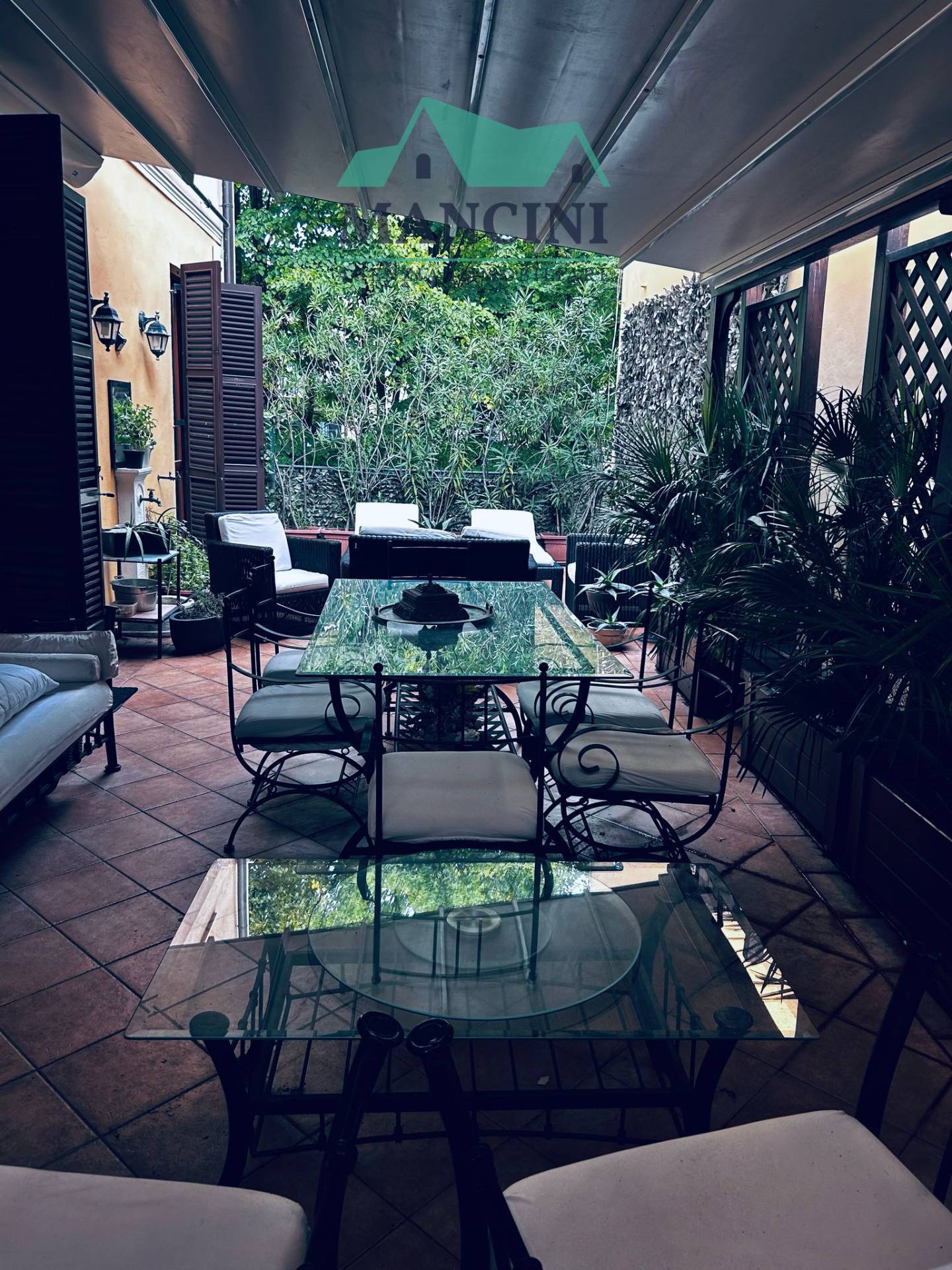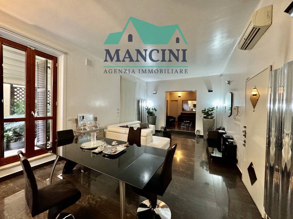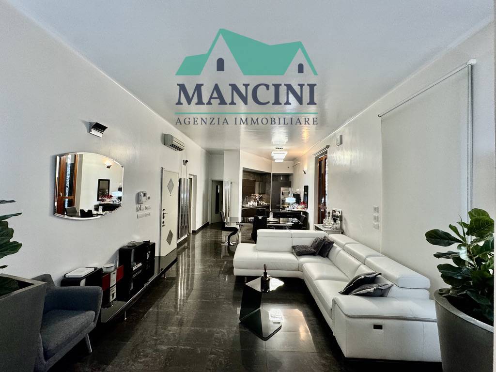 Splendido appartamento in vendita Jesi in palazzo storico Nobiliare completamente ristrutturato, servito da ascensore, un ' ampia terrazza mq 100, garage mq 100, finiture di pregio in tutta la casa, ingresso nel doppio salone di circa mq 45 con due zone relax di cui una per la tv con ampio divano e vista sulla grande terrazza in parte coperta, una cucina completa di tutto con ampio tavolo da pranzo con vista sulla terrazza, pavimento di marmo nero con sfumature di grigio in tutta la casa elegante e raffinata, due camere una matrimoniale con bagno in camera con vasca idromassaggio rifinito in elegante marmo chiaro, lungo il corridoio della zona notte e' situato un armadio a parete alto fino a soffitto, la cabina armadio serve la camera matrimoniale, nella camera troviamo il terzo armadio, la seconda camera con letto ad una piazza e mezzo con balcone, il secondo bagno con doccia, serve la cameretta e la zona giorno, il terzo bagno con bagno dispone di un bagno turco interno e lavanderia con accesso alla terrazza, nella parte opposta un' ampia cabina armadio, e' possibile creare la terza camera matrimoniale, l'immobile e' versatile e divisibile anche in due appartamenti, unico nel suo genere sobrio ed elegante i termo arredi tutti in acciaio realizzati a misura, in tutta la casa gli infissi sono doppio vetro alti fino a soffitto di color noce rivestiti in pvc, aria condizionata in tutta la casa e sistema dall'arme interno, Il garage ha un bagno con piccola corte esterna, predisposizione aria condizionata, puo' contenere fino a quattro auto ed e' possibile realizzare una palestra oppure un ufficio, la posizione strategica a dieci minuti a piedi dal centro e cinque in macchina dalla superstrada Jesi Centro, servito da tutti mezzi di trasporto e supermercati.