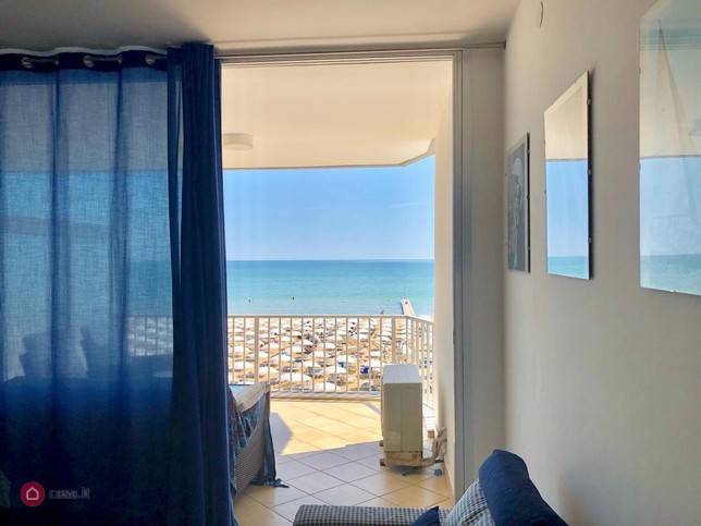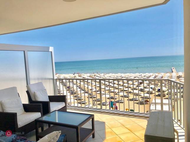 In ottimo stabile fronte mare in zona centralissima, proponiamo appartamento ristrutturato e cosi disposto: ingresso su ampio soggiorno cucina serivito da un terrazzo vivibile con ampia vista sul litorale, disimpegno che ci porta alle due camere matrimoniali, due bagni con un guarda roba, un ampio ripostiglio attualmente adibito a camera con letto a castello.
