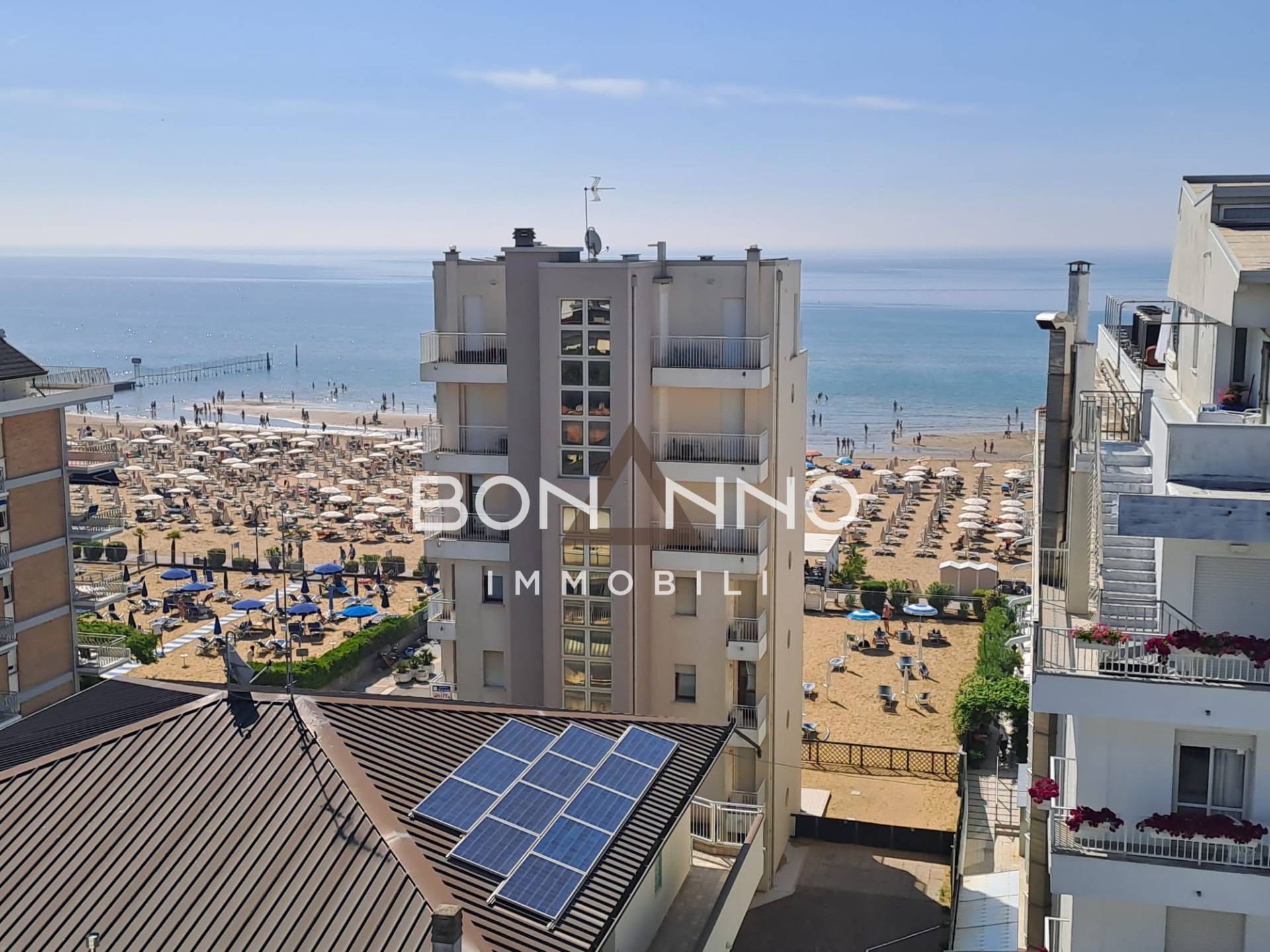 Bonanno Immobili propone in vendita appartamento di grandi dimensioni a Jesolo in Via Zara n.38 situato al Piano Quinto vista mare rif. "Residenza J6". Il complesso immobiliare J6 dista 50 metri dal mare ed ospita solo n. 6 appartamenti, uno per piano; Lappartamento in oggetto occupa lintero piano Quinto e si compone di: - N. 1 soggiorno con cucina open-space di 32 mq; - N. 3 camere (con balcone); - N. 2 bagni (finestrati); - N. 1 vano tecnico; - N. 1 terrazza di circa 50 mq. (di cui fronte soggiorno superficie utile di mq. 18). La superficie commerciale totale di mq. 132. Viste le grandi vetrate a scorrimento e l'esposizione a Sud - Ovest la soluzione gode di ottima luce naturale.