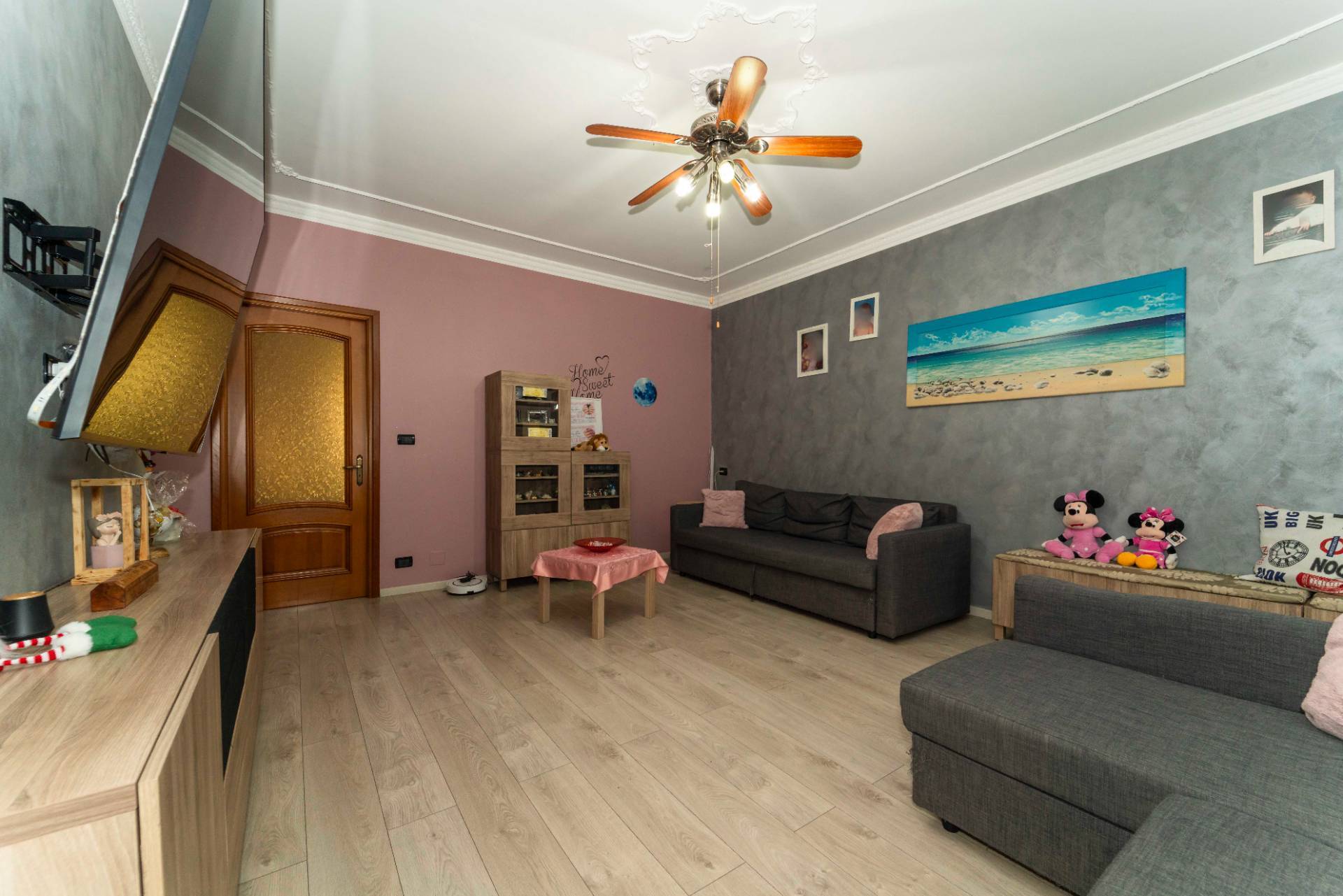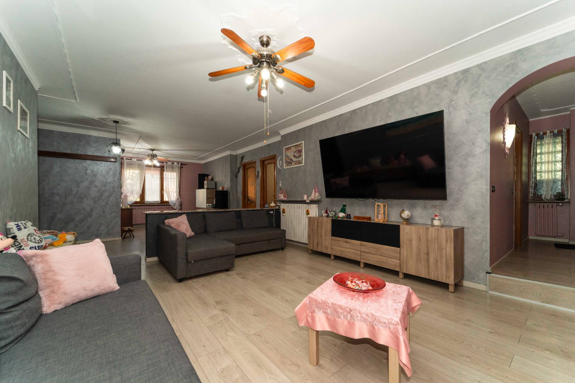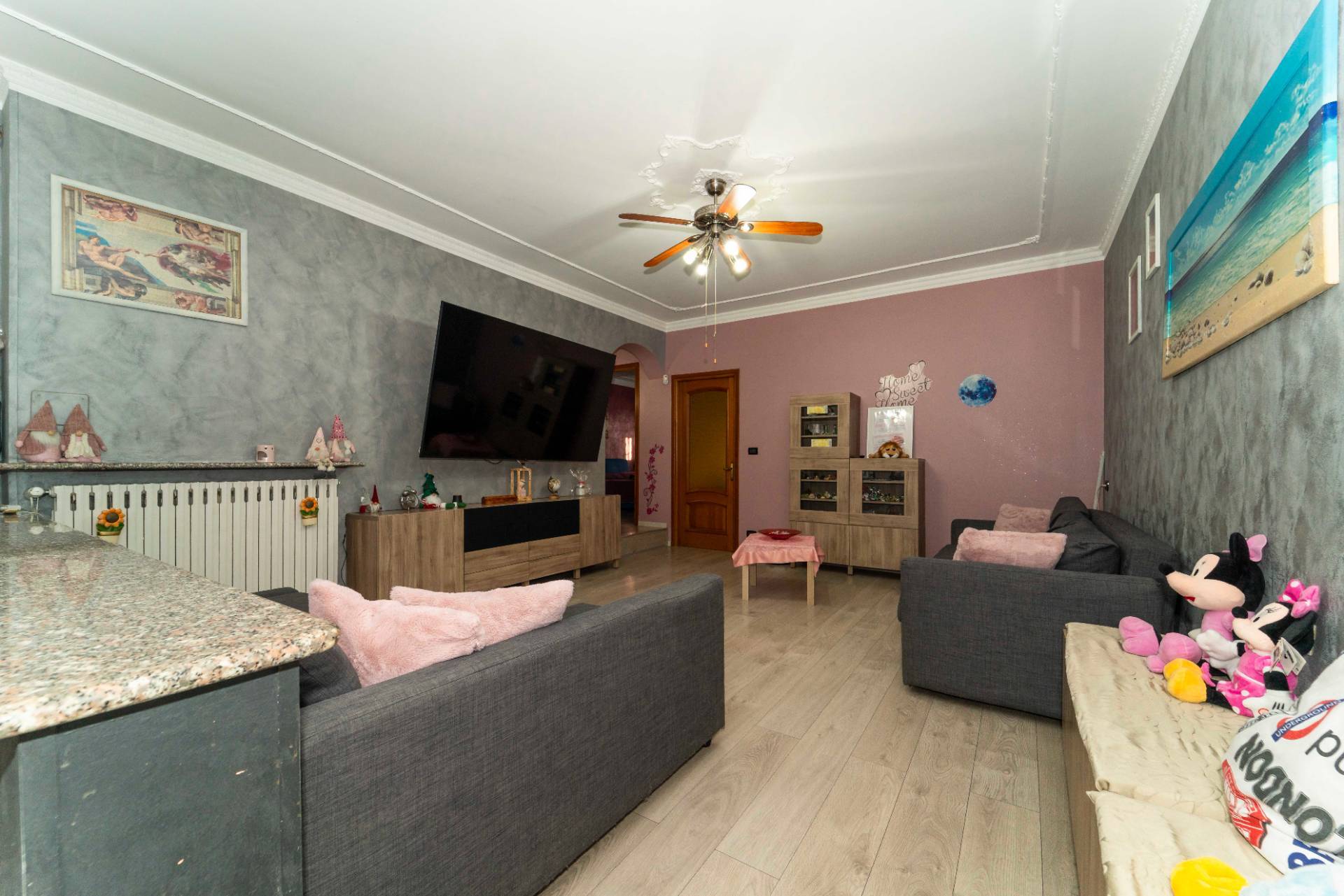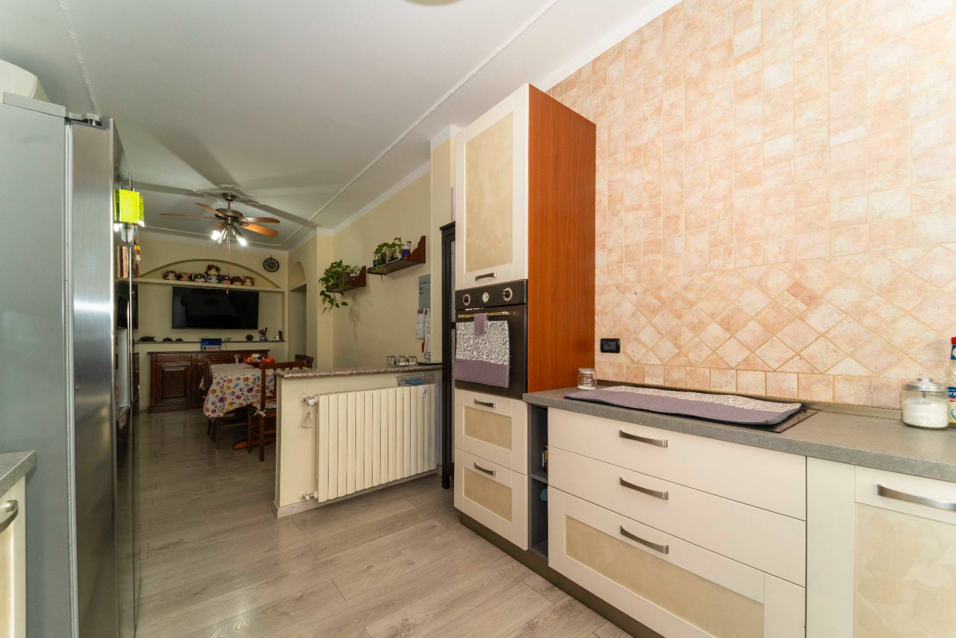 Lingresso accompagna a un ampio soggiorno living, luminoso e accogliente, affiancato da una cucina abitabile con zona pranzo, pensata per la convivialit.