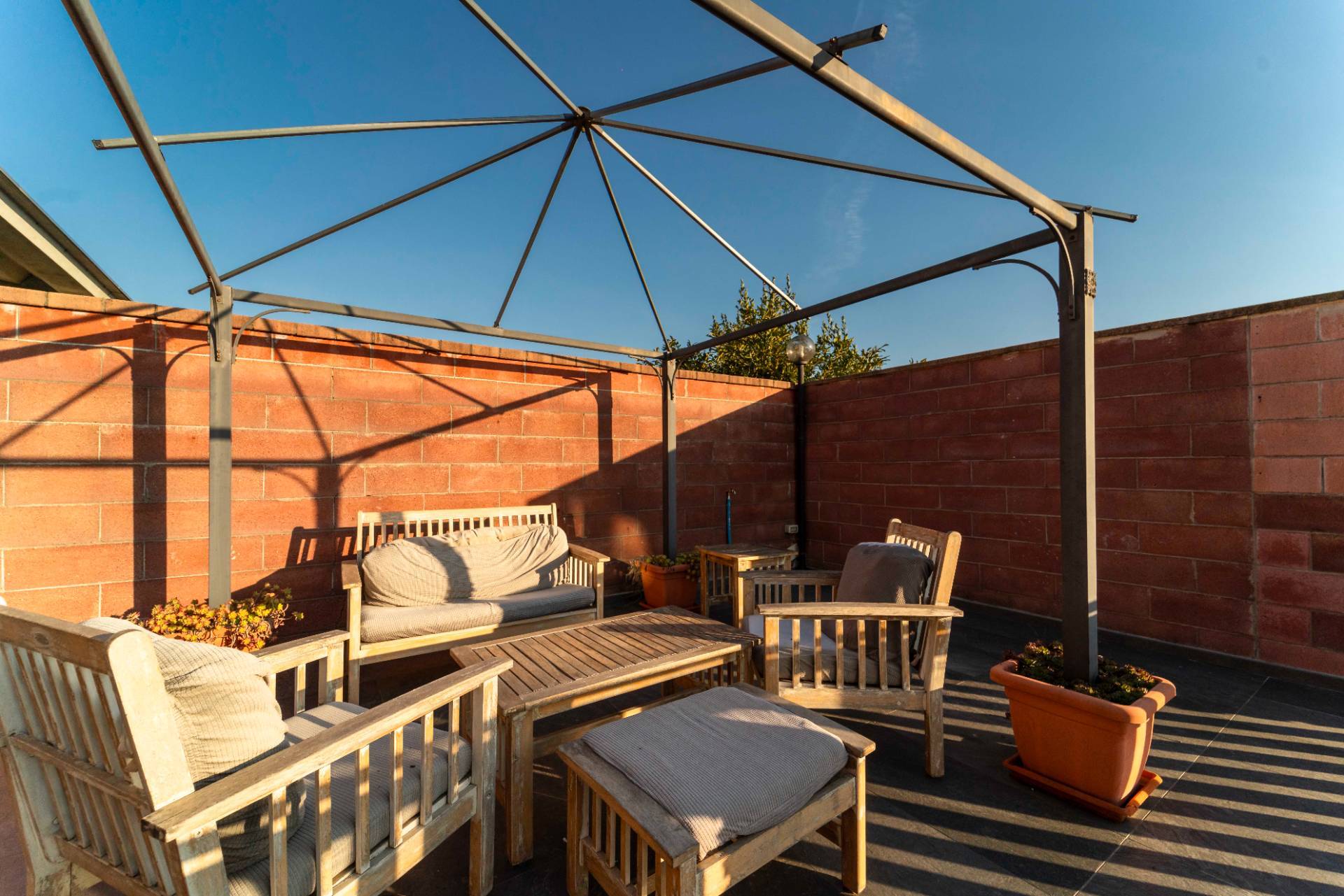 Completa il piano un grande terrazzo affacciato sullinterno cortile, spazio ideale per momenti di relax in totale privacy.