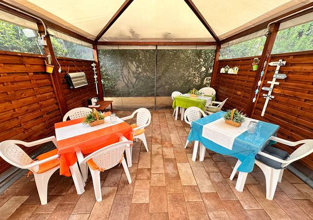 La propriet gode di una corte privata esterna, ideale per allestire una zona pranzo allaperto dove gli ospiti possono colazionare, pranzare o cenare godendosi il clima mite e latmosfera rilassata della Sardegna.