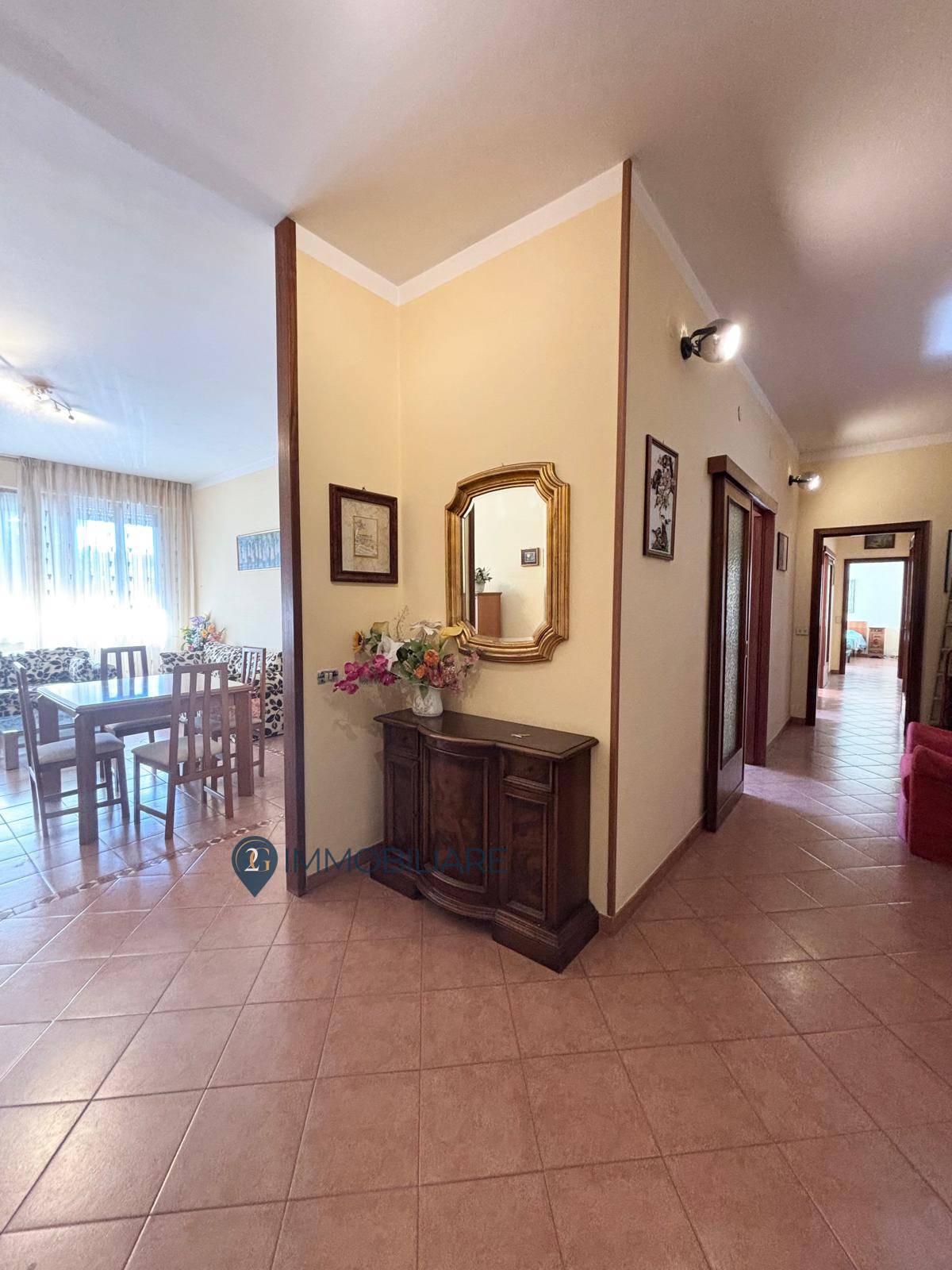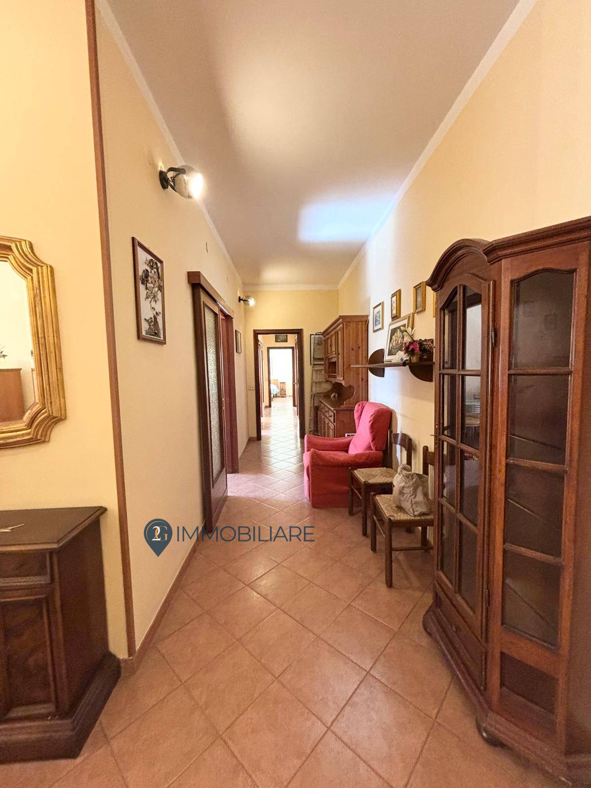 L'immobile ha un ampio vano d'ingresso in disimpegno che da accesso ad un luminoso salone doppio dove poter ricavare una eventuale zona cottura; tramite corridoio si accede ad una cucina abitabile e soleggiata( che potrebbe diventare una terza camera ), una comoda dispensa, due spaziose camere matrimoniali, un grande bagno finestrato con doccia.